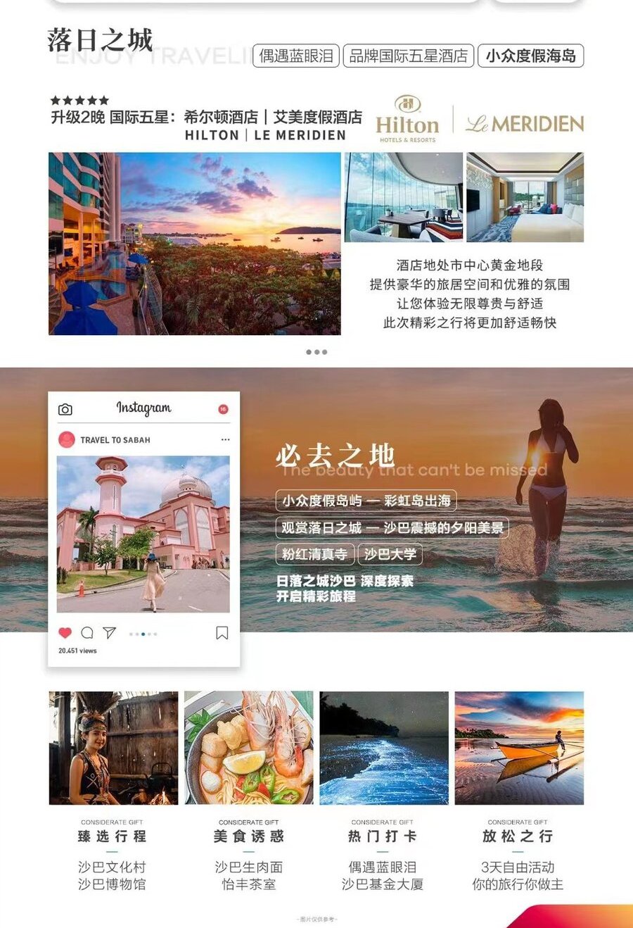 | 【网红最美沙巴粉红清真寺】(外观)这是一个美得很梦幻的清真寺。这座清真寺之所以梦幻,是她由圆穹到墙面,由大门到宣礼塔,都是清一色暖暖的粉红色,甜蜜得瞬间炸裂少女心。粉红色的壁面与雕花通风墙,伊斯兰典型的几何图腾,还有一天一地的粉红色。清真寺的每一面都很上镜。(清真寺是否开放以实际情况为准)【沙巴基金会大厦】(外观)敦马士达化大厦旧称沙巴基金局大厦(Yayasan SabahFoundation Building),建于 1977年,这座大厦是世上少数以一支主干轴体,由 96 支钢条呈辐射状支撑的圆体形建筑。它也是沙巴最具代表性的建筑物。【沙巴大学】大学依山傍海,环境优美,拥有世界最美丽的大学的美誉。大学同时拥有一流的软硬件设施供教学使用,大学拥有全马来西亚最美丽的图书馆,以及全马独一无二的大学博物馆和大学野外活动中心。【普陀寺】这座佛教寺院建于 1980 年,位于马来西亚沙巴岛斗亚兰路尽头(Tuaran Road),它袭承了中式寺院一贯的建筑风格。是当地华人的庙,当地华侨捐献修了一个普陀寺,寺里所有的原材料都是从中国运来的,门口有尊观音像,和台湾的观音像很不一样!还有寺庙是开放式的,香就放在炉前可随便取,当地人还把自己珍藏的有关佛学的书籍都放DAY05DAY04DAY06在寺里供大家阅读。如遇当地举行活动,则不能进入参观,敬请谅解。 |