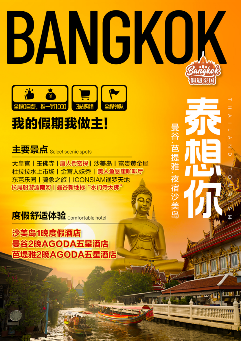 偶遇泰国“泰想你”【曼谷.芭提雅.沙美岛】5晚6天 北京直飞HU