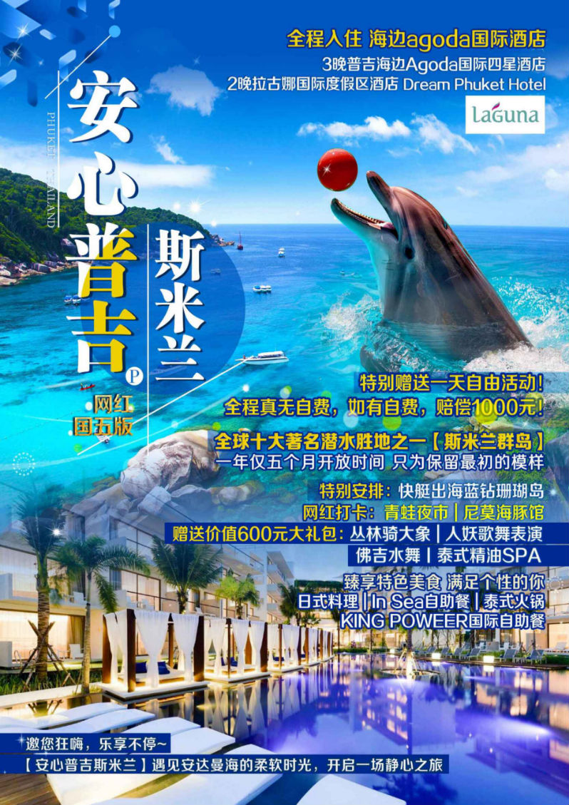 | 普吉岛全天自由活动普吉Q北京:参考航班时间TG684 2205/0440+1享受一个NO Morning Call的早晨,美美的睡到自然醒,最后一天是属于自己的一天,您可以安逸的躺在酒店柔软的床上也可以再次感受普吉湛蓝的大海,一切都随心所愿....到了和普吉说再见的时候了,后于约定时间集合乘车前往普吉机场办理登机手续返回北京结束愉快的普吉之旅。 |