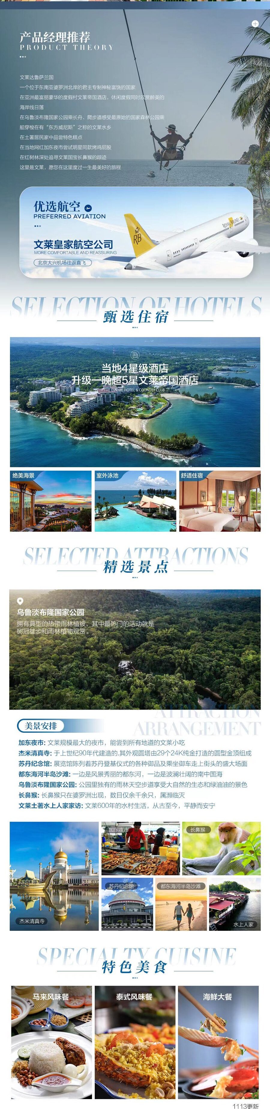 | 文莱-北京参考航班:BI6210150 / 0725前往汶莱国际机场,汶萊的美丽景色,充实您的行囊,为此行愉快的旅程划下完美的句点,搭乘文莱航空,一早抵达北京,飞返家园结束旅程! |