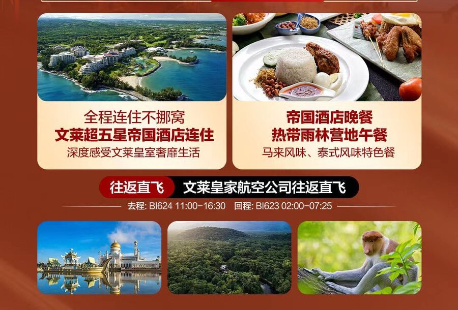 | 参考航班: BI623 文莱-北京 0200 / 0725搭乘文莱航空,一早抵达北京,结束旅程! |