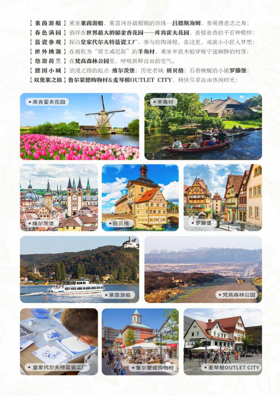 <赏花季荷兰+德国12日>国航往返直飞 全程四星级酒店 25人精品VIP小团