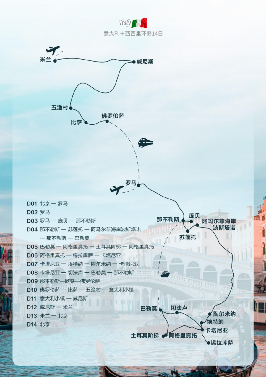 <意大利+西西里环岛14日游>25人以内 vip精品小团