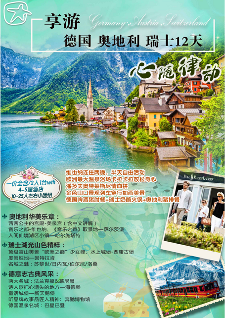<德奥瑞>德国奥地利瑞士12天 10-25人小团 全程赠送wifi 全程4-5星酒店