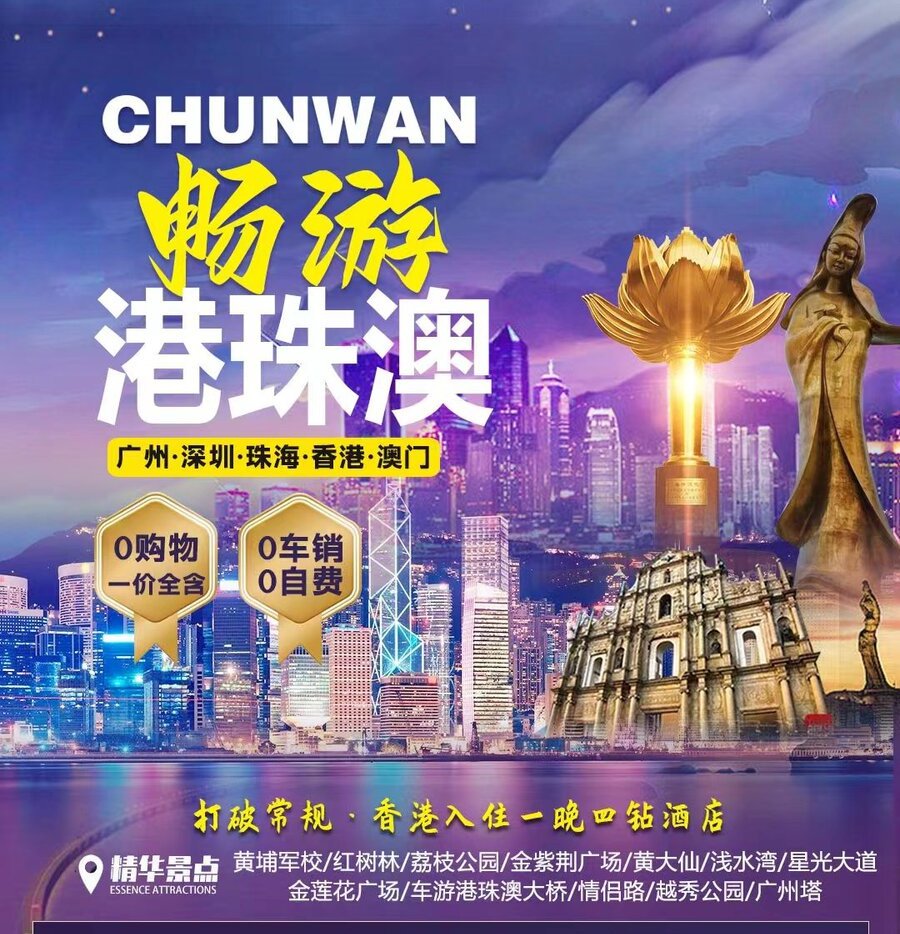 <畅游广深珠港澳>广州·深圳·珠海·香港·澳门双卧10日游 0购物0自费