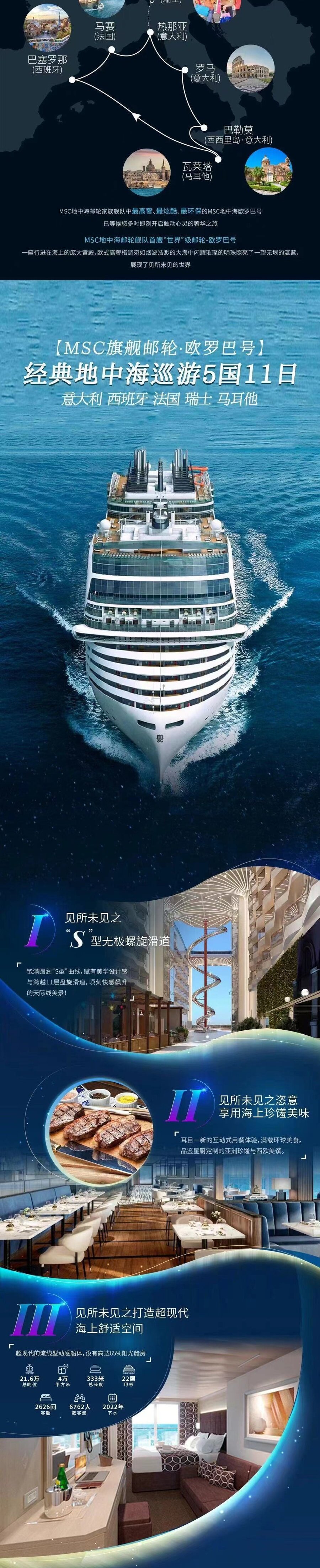 <欧洲地中海邮轮>MSC 邮轮欧罗巴号 经典地中海巡游 5 国 11 日游