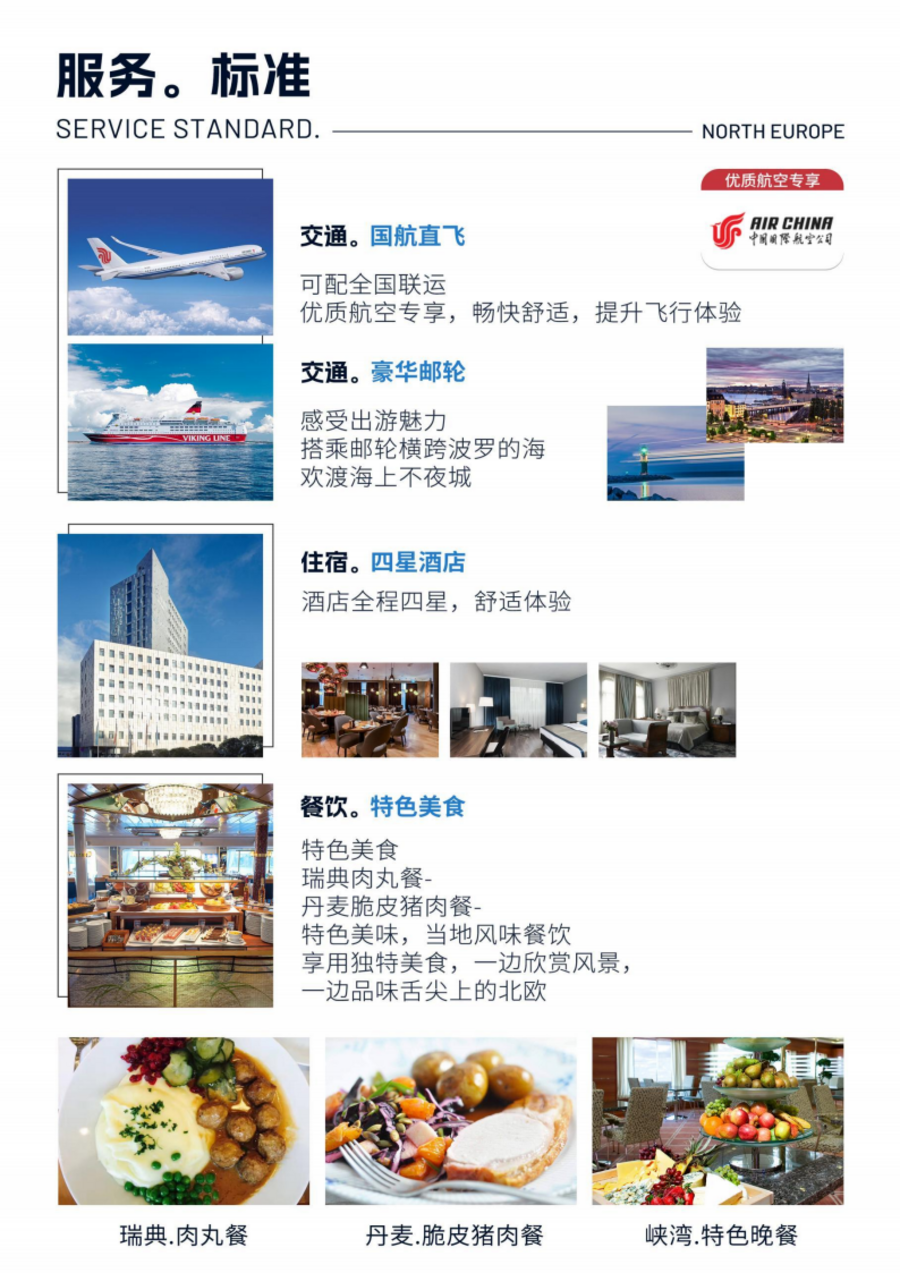 | 06:30 邮轮上早餐后,抵达瑞典斯德哥尔摩。07:00 乘车前往西郊的皇后岛,皇后岛属于瑞典皇家领地,是瑞典第一个被列入世界文化遗产名录的风景点。景点游览时间约 45 分钟。08:30 乘车前往玛丽弗雷德小镇,位于斯德哥尔摩西南,是环绕宏伟的格利普霍姆(Gripsholm)皇家城堡。景点游览时间约 30 分钟。09:30 前往风景秀丽的卡尔斯塔德,游览美丽的维纳恩湖。景点游览时间约 30 分钟。12:00 午餐在中餐厅享用六菜一汤中式菜肴。14:30 乘车前往瑞典小镇。17:00 抵达瑞典小镇,晚餐在餐厅享用六菜一汤中式菜肴。18:00 抵达酒店,办理入住休息。景点介绍:皇后岛 位于斯德哥尔摩的西面的梅拉伦湖上,有“瑞典的凡尔赛”之称,皇后岛宫是瑞典首个世界遗产,这里有着历史悠久,气势恢宏的两座古老建筑,至今,皇后岛的城堡部分依然居住着瑞典皇室。玛丽弗雷德【独家景点】 位于斯德哥尔摩西南,是环绕宏伟的格利普霍姆(Gripsholm)皇家城堡,1709年落成的,濒临梅拉伦湖,保存着历史风貌的风光小镇。得名于镇中修建于 10 世纪的修道院,这个修道院 500年前的宗教改革时不存在了。维纳恩湖 北欧最大的湖泊,也是欧洲第三大湖,维纳恩湖于约 1 万年前的冰河时期后形成。当冰川融化时,整个瑞典的土地都被水淹没,形成海峡,维纳恩就于冰后回弹形成。因此,现在湖里还有一些从冰河时间遗留下来的物种,在一般的淡水湖中罕见。 |
