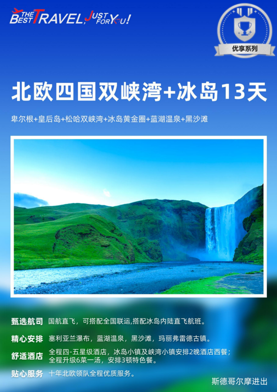 <北欧四国+冰岛13天>卑尔根|皇后岛|松哈双峡湾|冰岛黄金圈|蓝湖温泉|黑沙滩