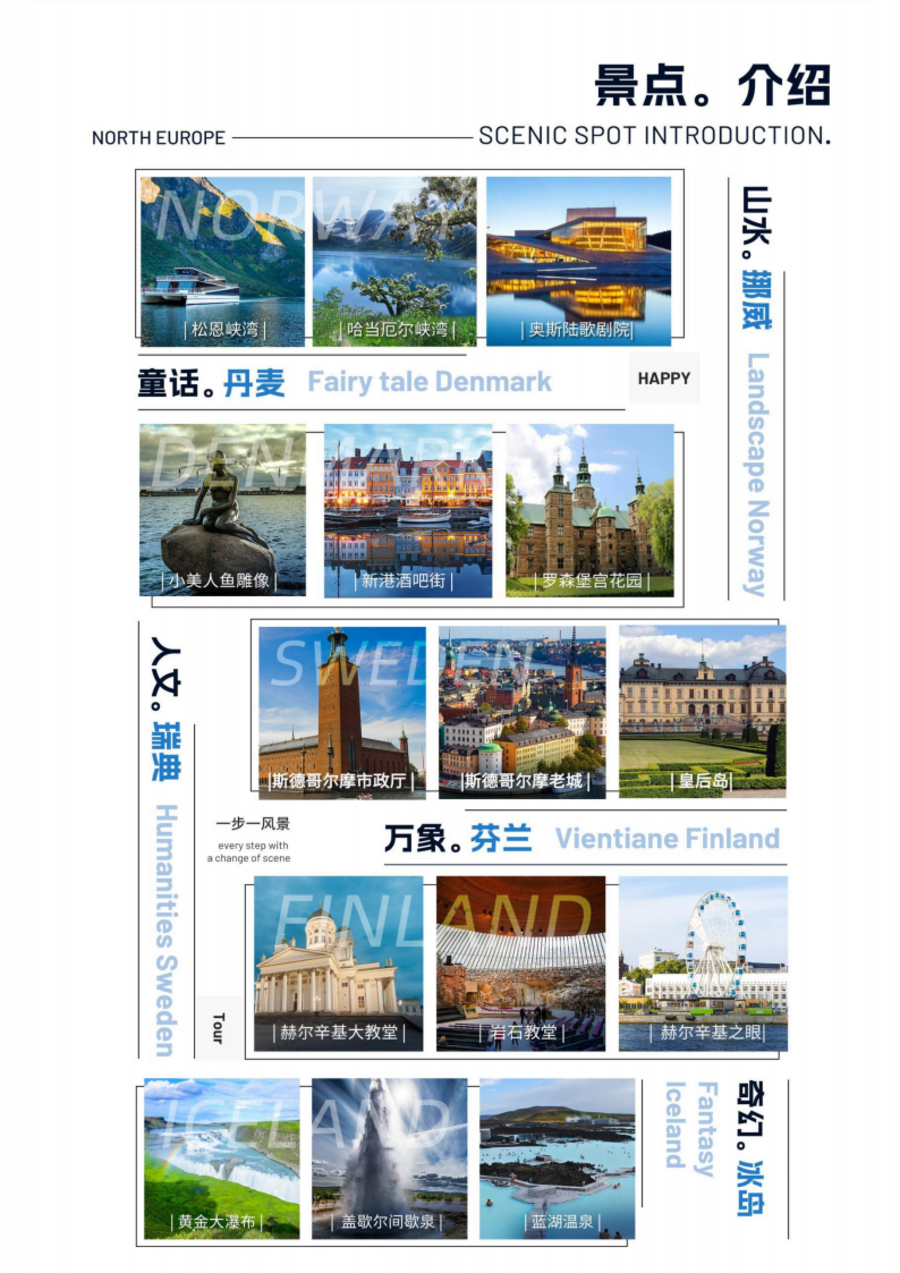| 09:00 酒店早餐后继续游览赫尔辛基市区景点。12:00 午餐在中餐厅享用六菜一汤中式菜肴。而后继续市区游览,市区景点游览时间约 2 小时。17:30 晚餐在中餐厅享用六菜一汤中式菜肴。18:30 晚餐后前往酒店办理入住休息。景点介绍:波罗的海女儿雕塑 在芬兰首都赫尔辛基的总统府门前,有一座著名的青铜喷泉雕塑——波罗的海的女儿。当这座雕像正式被安放在这里后,芬兰人给她起了个亲切的昵称——阿曼达。芬兰总统府(外观) 建于 1820 年,建成之后为了供俄国沙皇使用,还做了几次改造。芬兰独立之后,一直作为芬兰共和国总统的代表处及官邸使用。露天码头市场 是停泊大型国际游轮的港口,商贩们云集在这里,摊售新鲜瓜果蔬菜、鱼肉及鲜花,还有各种传统工艺品和旅游纪念品。既深受当地居民欢迎,也是外国游客的必到之处,成为赫尔辛基最引人注目的地方。乌斯别斯基教堂(外观) 显眼的金圆顶和红砖砌成的教堂显得格外凝重,旁边两棵大树与教堂交相辉映,正好是俄罗斯风情渗入芬兰历史的见证,保留了传统东正教堂的艺术风格。赫尔辛基之眼(外观)Skywheel 摩天轮于 2014 年正式运行,为赫尔辛基增添了一幅碧蓝的“眼睛”。Skywheel的直径高达 40 米,设有 30 个吊舱。蓝色与白色交织的摩天轮完美地融入在天空与大海之间。 |