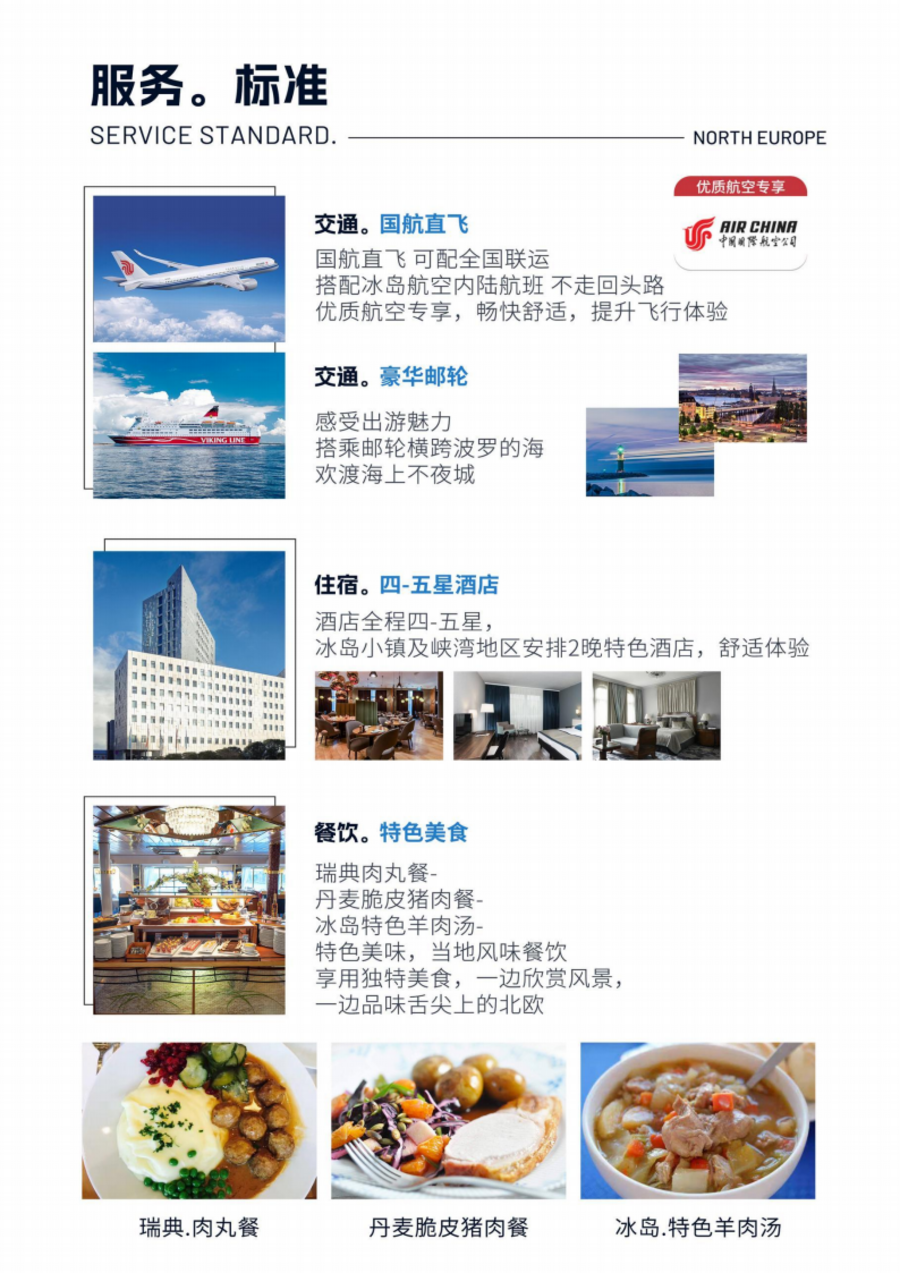 | 06:30 邮轮上早餐后,抵达瑞典斯德哥尔摩。这是一座建在水上的城市,14 座岛屿,57 座桥梁。既不输威尼斯的繁华,也更具有首都的气魄。繁华的都市生活与纯朴的自然天地完美融合,使其散发独特的魅力。07:00 开始斯德哥尔摩市区游览。12:30 午餐在中餐厅享用瑞典肉丸餐。之后继续市区游览。15:00 前往机场,抵达后办理值机手续,出关退税等手续。19:00 准备登机,搭乘中国国航航班返回北京。景点介绍:斯德哥尔摩市政厅(入内参观约 45 分钟) 位于瑞典首都中心的梅拉伦湖畔,是斯德哥尔摩的地标性建筑,也是市政委员会的办公场所。主体以 800 万块红砖建造,在高低错落、虚实相谐中保持着北欧传统古典建筑的诗情画意。其中有誉称“蓝厅”的宴会厅是为诺贝尔奖金获得者举行隆重盛大的宴会的地方,登上塔顶则可纵目四望,斯德哥尔摩美丽的城市风光尽收眼底。斯德哥尔摩老城 老城历史可以追溯到 13 世纪,距今已有 700 多年,是欧洲最大的保存最完好的中世纪市中心之一,也是斯德哥尔摩最迷人的景点之一。透过建筑的外墙,幸运的你还能发现中世纪时的尖顶和壁画。瑞典皇宫(外观) 建于公元 17 世纪,位于首都斯德哥尔摩中心岛上的老城中。雄伟高大、金碧辉煌,“口”字型四四方方的王室宫殿,是世界上连体房间最多最大的皇宫,很有气势,里面的建筑风格以巴洛克风格和Recoco 风格为主。这里是国王办公和举行庆典的地方,也是斯德哥尔摩主要旅游景点。斯德哥尔摩大教堂(外观) 是瑞典首都斯德哥尔摩老城最古老的教堂,是瑞典砖砌哥特式建筑的重要例证。它毗邻斯德哥尔摩王宫,是通往王宫的主要通道王宫斜坡的西部顶点,而大教堂斜坡、主要卫队阳台、和狭窄海峡等街道分别位于其北侧和西侧。国王花园 过去这里是专供王室厨房种植花卉蔬菜的田地,故称为国王花园。现在作为街区中心公园对外开放,这里夏季鲜花绽放,五彩缤纷,冬季则是溜冰场,是市民休闲娱乐场所。花园中央有一个长方形大水池,两边各有一个瑞典国王的雕像,一座下边有四个铁墩的是卡尔 12 世(Karl XII),另一座下面有四只狮子雕像的是卡尔 13 世(Karl XIII)。骑士岛 骑士岛是瑞典斯德哥尔摩市中心的一个小岛。该岛是斯德哥尔摩老城的一部分, 拥有许多 17 世纪以来的私人宫殿。主要地标是皇家葬礼教堂骑士岛教堂,自从 16 世纪以来的许多位瑞典君主都埋葬于此。瑞典特色肉丸餐 瑞典肉丸可以说是最具代表性的瑞典菜。瑞典人食用肉丸时最喜欢搭配煮土豆,肉汤和果酱;也有时候会搭配新鲜的盐渍黄瓜。中午安排享用瑞典肉丸餐,品味当地饮食。 |