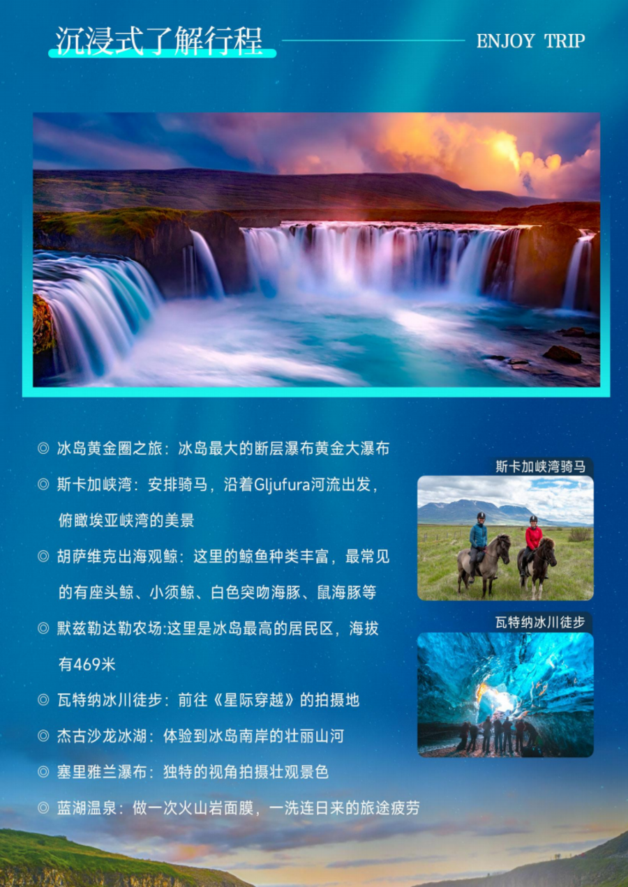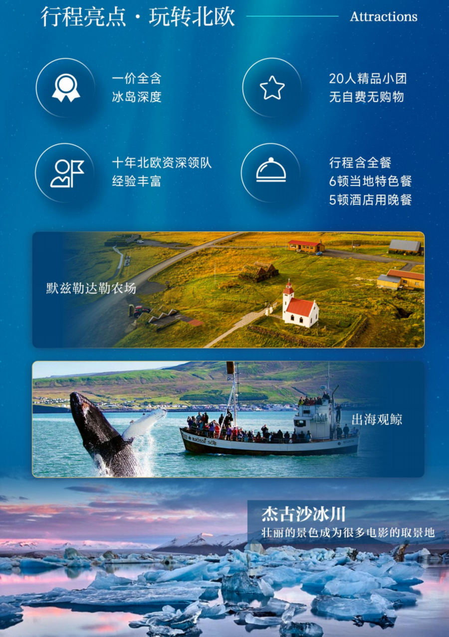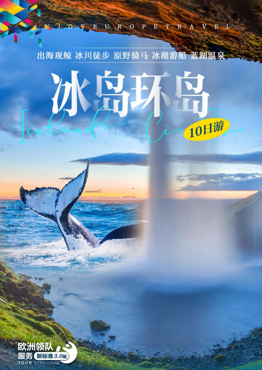 <冰岛环岛10日游>岀海观鲸 冰川徒步 原野骑马 冰湖游船 蓝湖溫泉