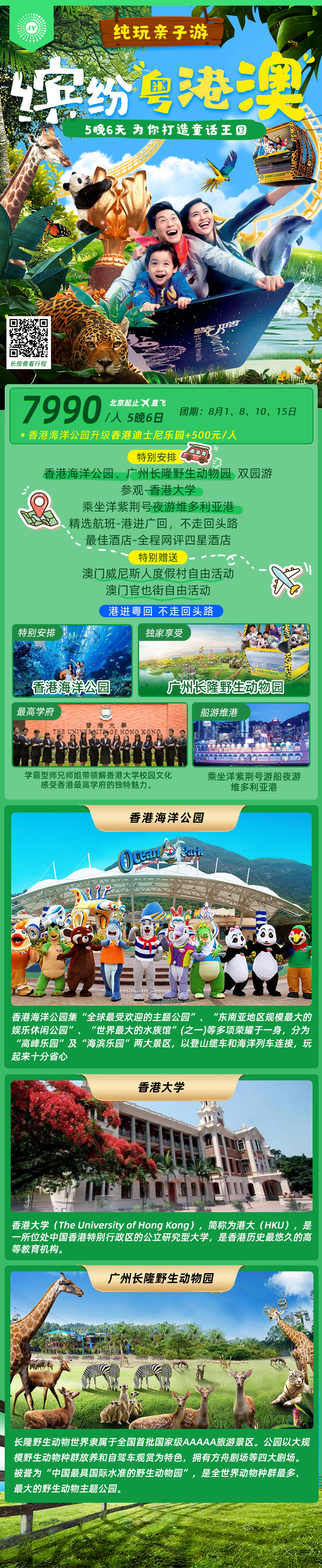 【缤纷粤港澳】B2-香港澳门广州5晚6天亲子纯玩行程(香港海洋公园+广州长隆野生动物园))(金阳假期B)