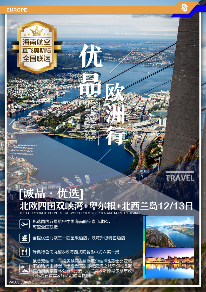 <优选>北欧四国双峡湾+卑尔根+北西兰岛13日 海航航空直飞 全国联运