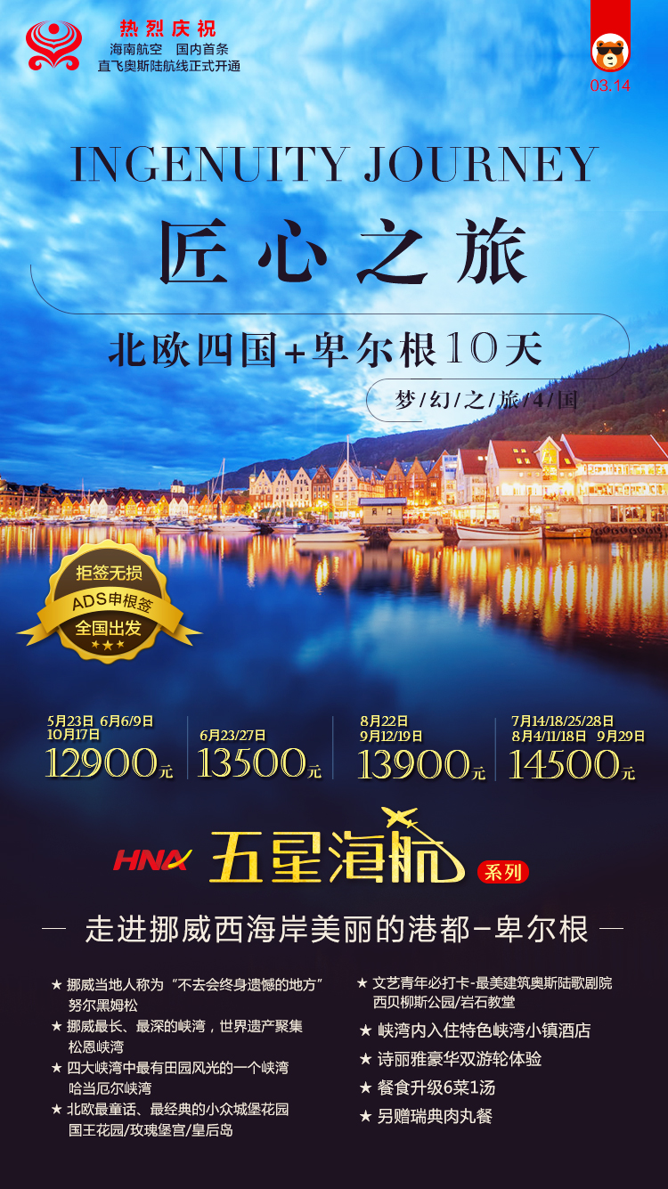 <北欧+卑尔根>北欧四国+卑尔根10日游 挪威西海岸美丽港都--卑尔根