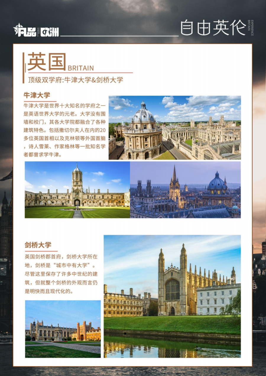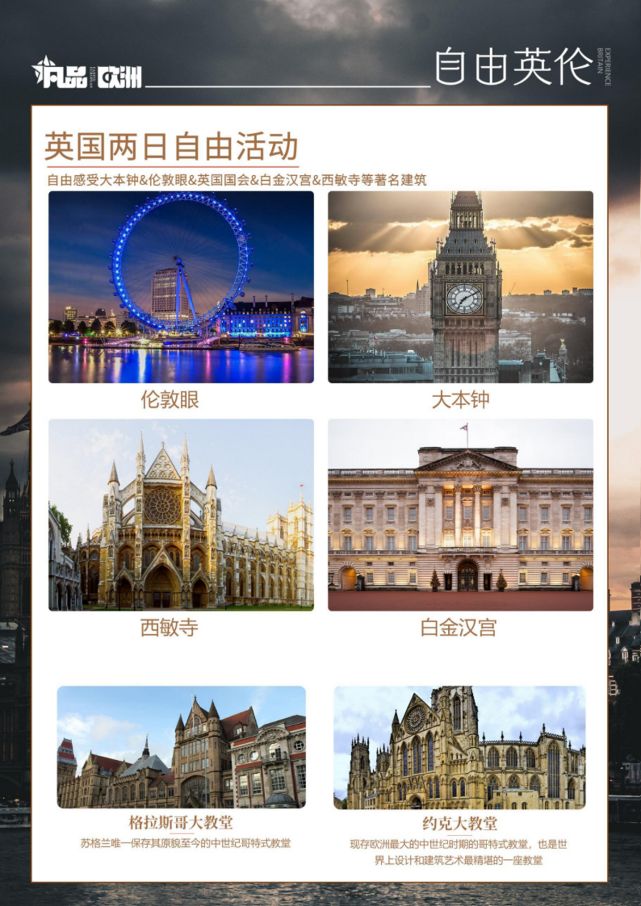 | 早餐:酒店早餐上午:乘车乘车前往由中世纪城墙所围绕的古城-约克,这里到处洋溢着罗马时代和中古时期的气氛,外观英国最大的哥特式教堂-约克大教堂(外观游览不少于 30 分钟)。13 世纪初开始动工,250 年后才修建完成。教堂内拥有世界面积最大的中世纪彩绘玻璃和世界最古老的侧廊。漫步《哈利波特》电影对角巷取景地—肉铺街,也是英国迄今为止保存最完整、最古老的中世纪街道。午餐:六菜一汤下午:乘车乘车前往闻名全世的大学城——剑桥(入内游览约 2 小时),循着徐志摩的足迹,留下值得一生收藏的回忆!之后我们将外观最具代表性的两个学院,“国王学院”是剑桥大学最著名的学院,学院内的国王礼拜堂(King's College Chapel)是剑桥建筑的一大代表,也是中世纪晚期英国建筑的重要典范。“三一学院”是剑桥大学最大的学院,现于三一礼拜堂外,还有一棵从牛顿家乡移植来的苹果树,以纪念这位万有引力之父。自由漫步在各具特色、风格殊异的学院间,感受一下在霍格华兹一般的学园求学的气氛。晚餐:自理行程结束后,入住沿途酒店休息 |