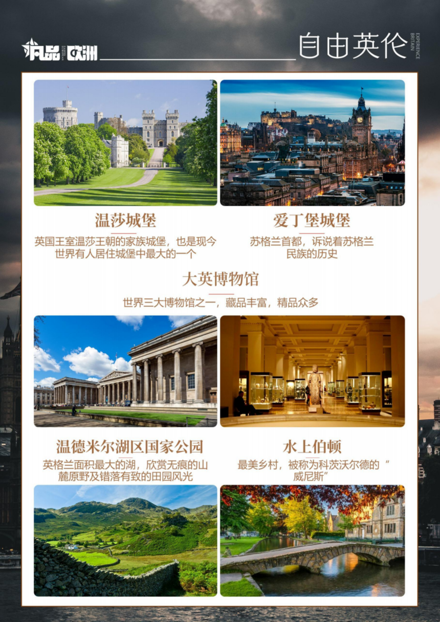 | 早餐:酒店早餐上午:乘车前往格拉斯哥,格拉斯哥是苏格兰最大的城市,其历史可以追溯到石器时代,但这座城市又是完全现代化的,并且一直走在时尚前沿。19 世纪末维多利亚时代,格拉斯哥已有了“大英帝国第二城市”的美誉。格拉斯哥大教堂是苏格兰唯一保存其原貌至今的中世纪哥特式教堂,其他的哥特式教堂大多在宗教改革期间被破坏了。这座教堂兴建于公元 1136 年,如今依然在修建中。巴塞罗那修了 100 多年还在修的圣家堂跟它比起来就小巫见大巫了。教堂分为教堂区和墓室两层,格拉斯哥的守护神圣芒戈(Saint Mungo)就埋葬在墓室之中。乔治广场是格拉斯哥市内最主要的广场,以英国国王乔治三世的名字命名,建于维多利亚时期。广场上竖立着很多格拉斯哥和苏格兰的名人雕像,比如苏格兰人民最喜爱的诗人罗伯特·彭斯(Robert Burns)和发明蒸汽机的瓦特(James Watt)等。广场中央的纪念柱是纪念苏格兰作家沃尔特·斯科特(Walter Scott)爵士的,这是英国第一座斯科特的雕像。格拉斯哥市政厅是维多利亚市政建筑的经典作品,典型的意大利文艺复兴风格,奢华的装饰象征着格拉斯哥在工业革命时代的繁华。午餐:六菜一汤下午:乘车前往苏格兰首府——爱丁堡,这里依山傍水,风光绮丽,气候湿润温和,市内鲜花盛开,古代宫殿、教堂和城堡点缀其间,文化遗产丰富,是英国最 美丽的城市之一,素有“北方雅典”之称。【爱丁堡城堡(外观】苏格兰和爱丁堡的重要象征,诉说了苏格兰民族的历史。它坐落在一座 120 米高的死火山的花岗岩顶上,俯瞰众生。城堡曾经历过数不清的战争和围困,在十二世纪至十六世纪间见证了苏格兰皇室宫廷生活。追溯到激烈的铁器战争时代,这里是战士负隅顽抗所保卫一座古要塞。爱丁堡城区游览:王子街(游览);王子街花园;旧城区;圣吉尔大教堂(外观);苏格兰国家博物馆(外观)晚餐:自理行程结束后,入住沿途酒店休息 |