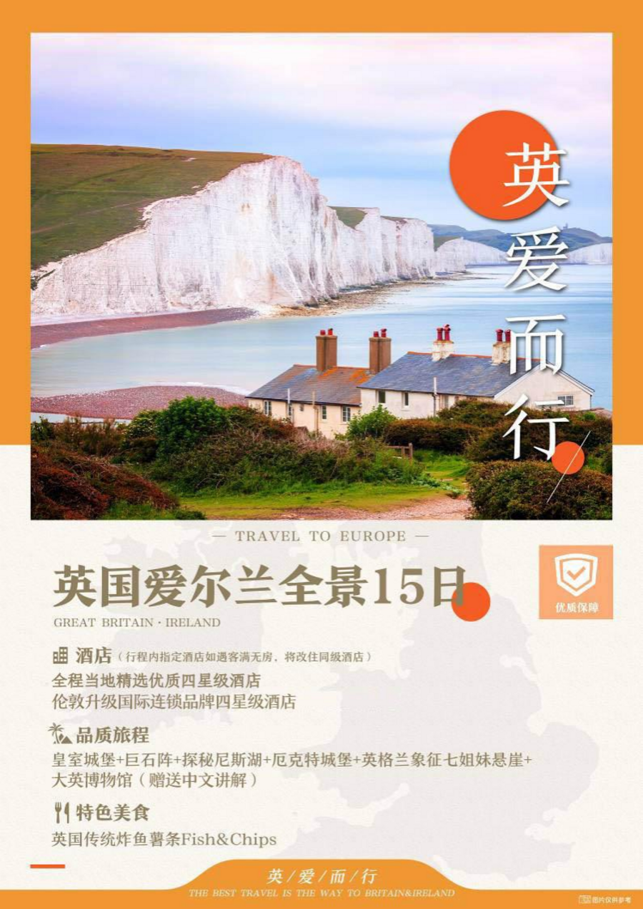 | 08:00 酒店享用早餐;09:00 乘车前往英格兰的象征-七姐妹国家公园(车程约 20 英里);09:30 七姐妹悬崖位于英国七姐妹白色断崖国家公园的断崖海岸线,有七座主要的白垩断崖(WhiteCliffs)相连,紧临英吉利海峡,故名为“七姊妹”。七姐妹岩位于布莱顿与伊斯特本之间,绵延起伏数公里。从西到东,顺序以 Cuckmere Haven 以东。峭壁山峰和它们之间的倾角个别的名字命名;10:00 乘车返回伦敦(车程约 80 英里);12:00 享用午餐,中式七菜一汤;13:00 伦敦观光;游览议会制度的发源地-英国国会大厦(外观,约 20 分钟)女王加冕登基的地方、埋葬历代帝王将相西敏寺大教堂(外观,约 15 分钟),二战劫后余生的大本钟(约15 分钟),外观白金汉宫。游览伦敦城的标志素有“伦敦正门”之称的伦敦塔桥(外观);参观收藏民俗珍品最为丰富的大英博物馆*(入内参观约 1.5 小时,中文讲解),馆内的收藏令人目不暇接,尤其东方世界的藏品,包括古埃及、古希腊及古罗马,令人叹为观止,还有文艺复兴时期的历史珍藏,令人留恋往返;17:00 享用晚餐,中式七菜一汤;18:00 入住酒店休息; |