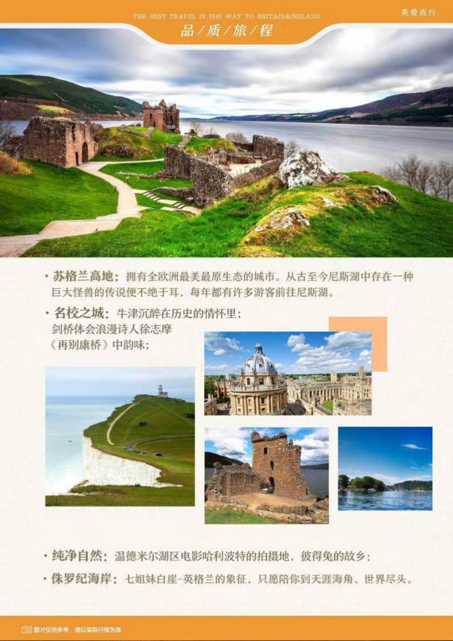 | 08:00 酒店内享用早餐;08:30 乘车前往威廉堡(车程约 65 英里);10:00 参观威廉城堡遗址。现今的威廉城堡几乎大部份都被破坏了,所谓的城堡遗迹只剩下一处荒烟蔓草和一块解说碑。威廉城堡原本是一座军事要塞,由 Mackay 将军建于 1690 年,曾驻扎数百名士兵。Mackay 以威廉王之名替城堡命名,也使得威廉城堡成为今日镇名。而著名的西高地之路或是大峡谷路线的终点就在此堡;12:00 享用午餐,中式七菜一汤;13:00 乘车前往英国小镇(车程约 130 英里);17:00 享用晚餐,中式七菜一汤;18:00 入住酒店休息;(温馨提示:明日行程需要坐船,出发时间比较早行程比较辛苦,请您着轻便类服装,准备好零食;由于英格兰至北爱尔兰船票紧张,视船票预定情况调整行程) |