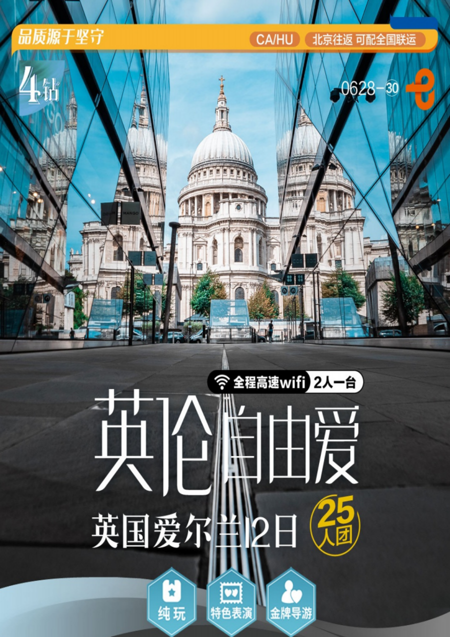 <英国 爱尔兰12日>25人团 纯玩 特色表演 金牌导游