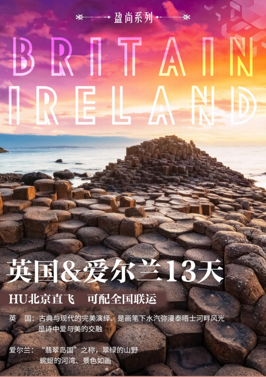 <英国 爱尔兰13天>HU北京直飞 可配全国联运
