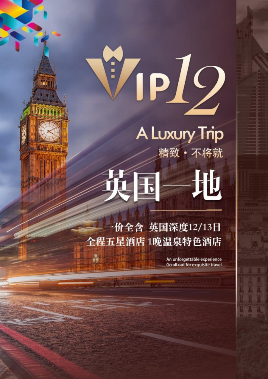 <英国深度13日游>一价全含 全程五星酒店 1晚温泉特色酒店