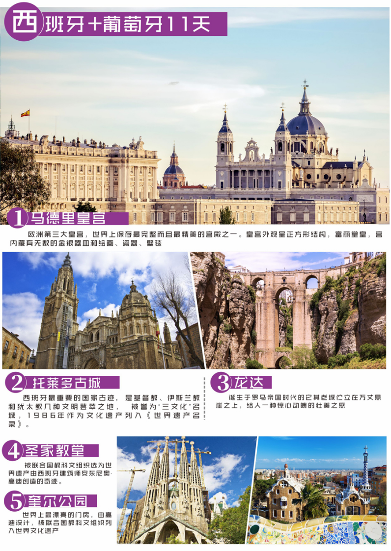 <经典之旅>西班牙、葡萄牙经典之旅11日游 特别安排巴塞一天自由活动