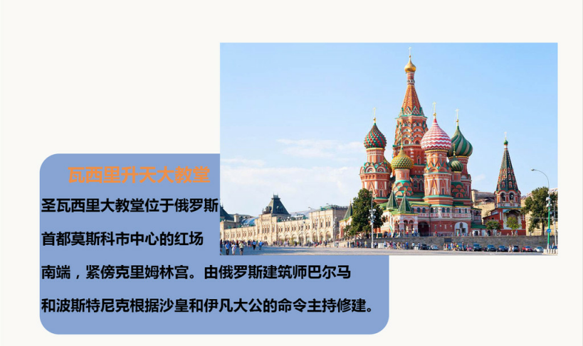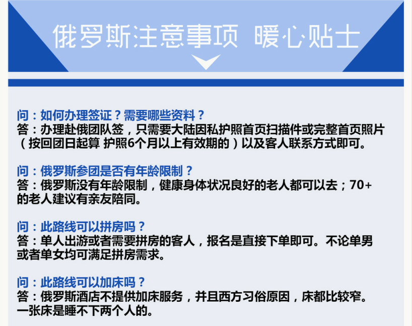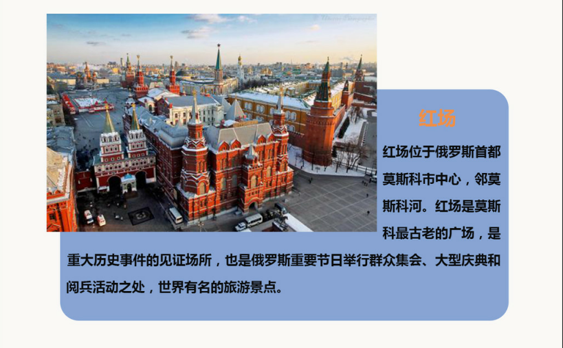 | 早餐后,前往参观红场(约1小时),主要景点:国家历史博物馆(外观)--瓦西里升天大教堂(外观)--古姆百货--列宁墓(视情况而定,自由活动时间内可自行入内参观,每周一、五闭馆)--克里姆林宫(外观,约为10分钟,每周四闭馆)--朱可夫雕像--亚历山大花园--无名英雄烈士墓及无名圣火。红场:是莫斯科最古老的广场,也是俄罗斯最美丽的广场。这里见证了许多重大历史事件的发生,如今是举行阅兵活动和大型庆典的地方。瓦西里升天大教堂:这座有着四百多年历史的教堂是俄罗斯的代表和象征,教堂的9个穹顶用不同的颜色和特有的花纹点缀,它的存在是俄罗斯艺术高度的最好体现。克里姆林宫(可自费入内):这里是整个莫斯科市的发端与起源,它曾是俄国沙皇的皇宫,现在是俄罗斯总统府和国家领导人的办公地点,1990年被联合国教科文组织列为世界文化和自然保护遗产。晚餐后,入住酒店休息。温馨提示:红场如遇举行政治活动或有特殊事件会临时关闭,无法参观。这种情况下我们不能提前通知,敬请谅解。 |