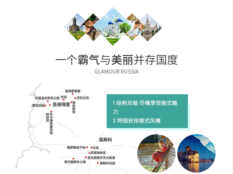 | 早餐后,前往参观红场(约1小时),主要景点:国家历史博物馆(外观)--瓦西里升天大教堂(外观)--古姆百货--列宁墓(视情况而定,自由活动时间内可自行入内参观,每周一、五闭馆)--克里姆林宫(外观,约为10分钟,每周四闭馆)--朱可夫雕像--亚历山大花园--无名英雄烈士墓及无名圣火。红场:是莫斯科最古老的广场,也是俄罗斯最美丽的广场。这里见证了许多重大历史事件的发生,如今是举行阅兵活动和大型庆典的地方。瓦西里升天大教堂:这座有着四百多年历史的教堂是俄罗斯的代表和象征,教堂的9个穹顶用不同的颜色和特有的花纹点缀,它的存在是俄罗斯艺术高度的最好体现。克里姆林宫(可自费入内):这里是整个莫斯科市的发端与起源,它曾是俄国沙皇的皇宫,现在是俄罗斯总统府和国家领导人的办公地点,1990年被联合国教科文组织列为世界文化和自然保护遗产。晚餐后,搭乘四人包厢商务列火车前往圣彼得堡。温馨提示:红场如遇举行政治活动或有特殊事件会临时关闭,无法参观。这种情况下我们不能提前通知,敬请谅解。 |