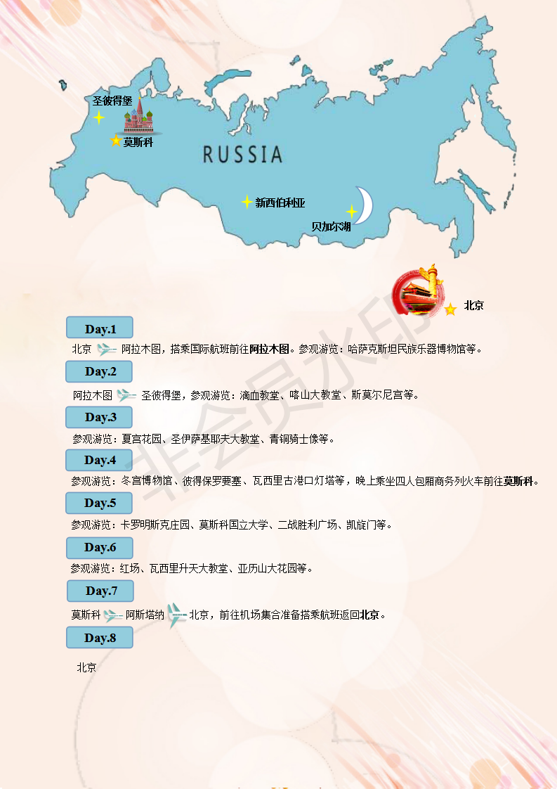 <惠享>俄罗斯8天阿拉木图+圣彼得堡+莫斯科线路(KC)