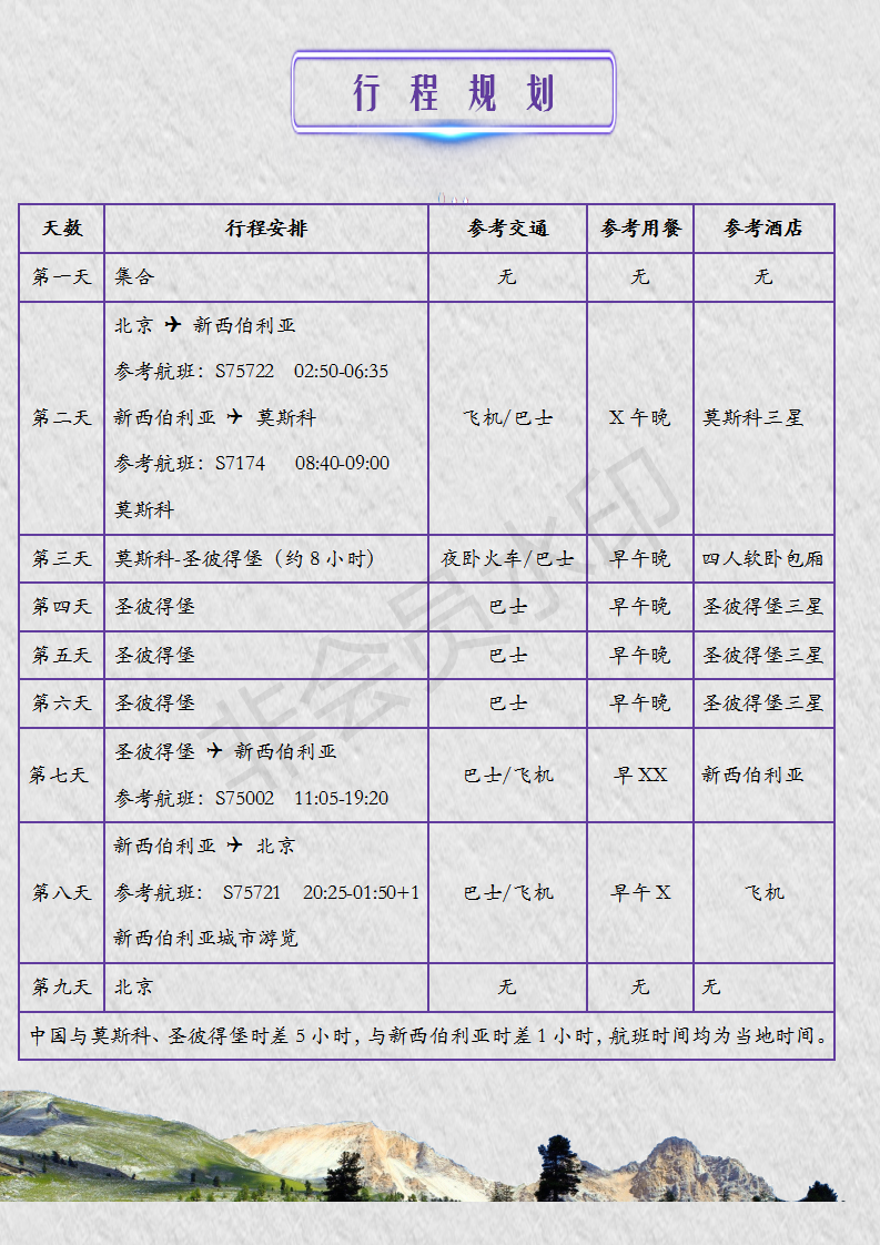 <一价全含>一价全含俄罗斯9天新西伯利亚+圣彼得堡+莫斯科四飞线路
