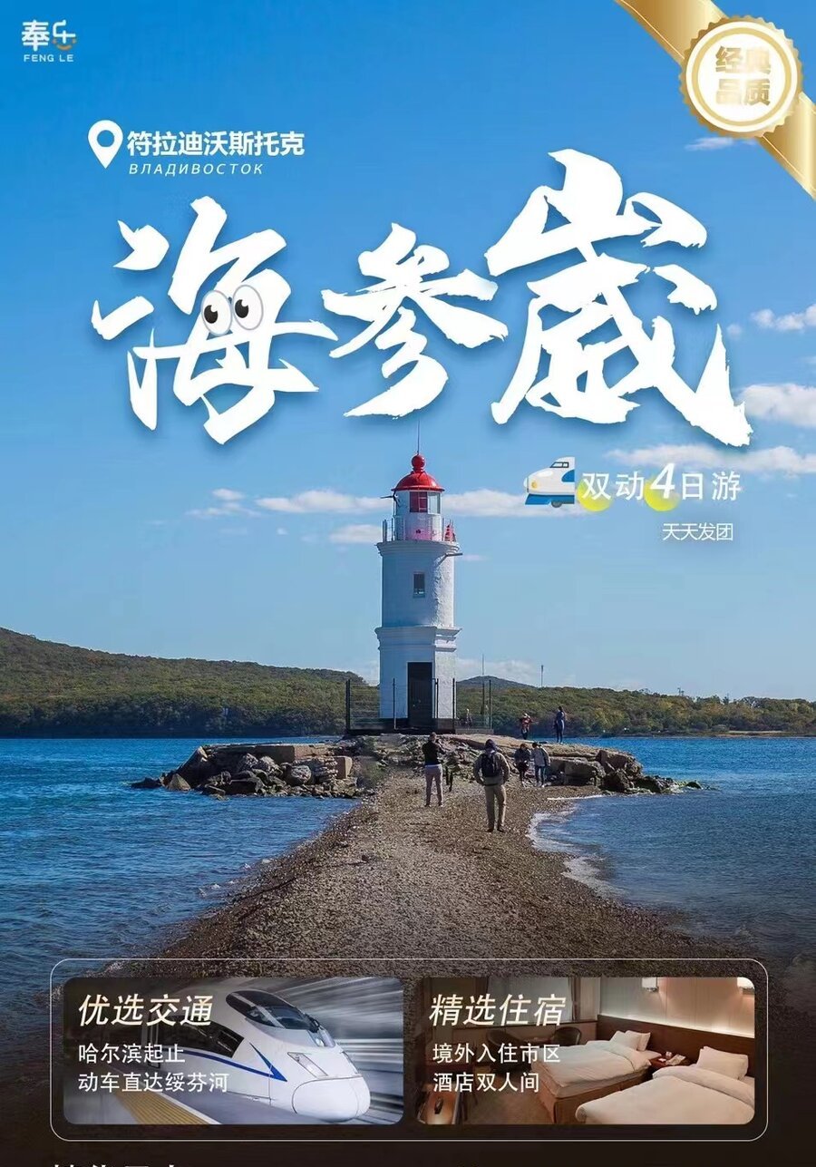 <哈尔滨出发>哈尔滨--海参崴品质动车四日游 动车直达绥芬河 (或密山口岸进入)