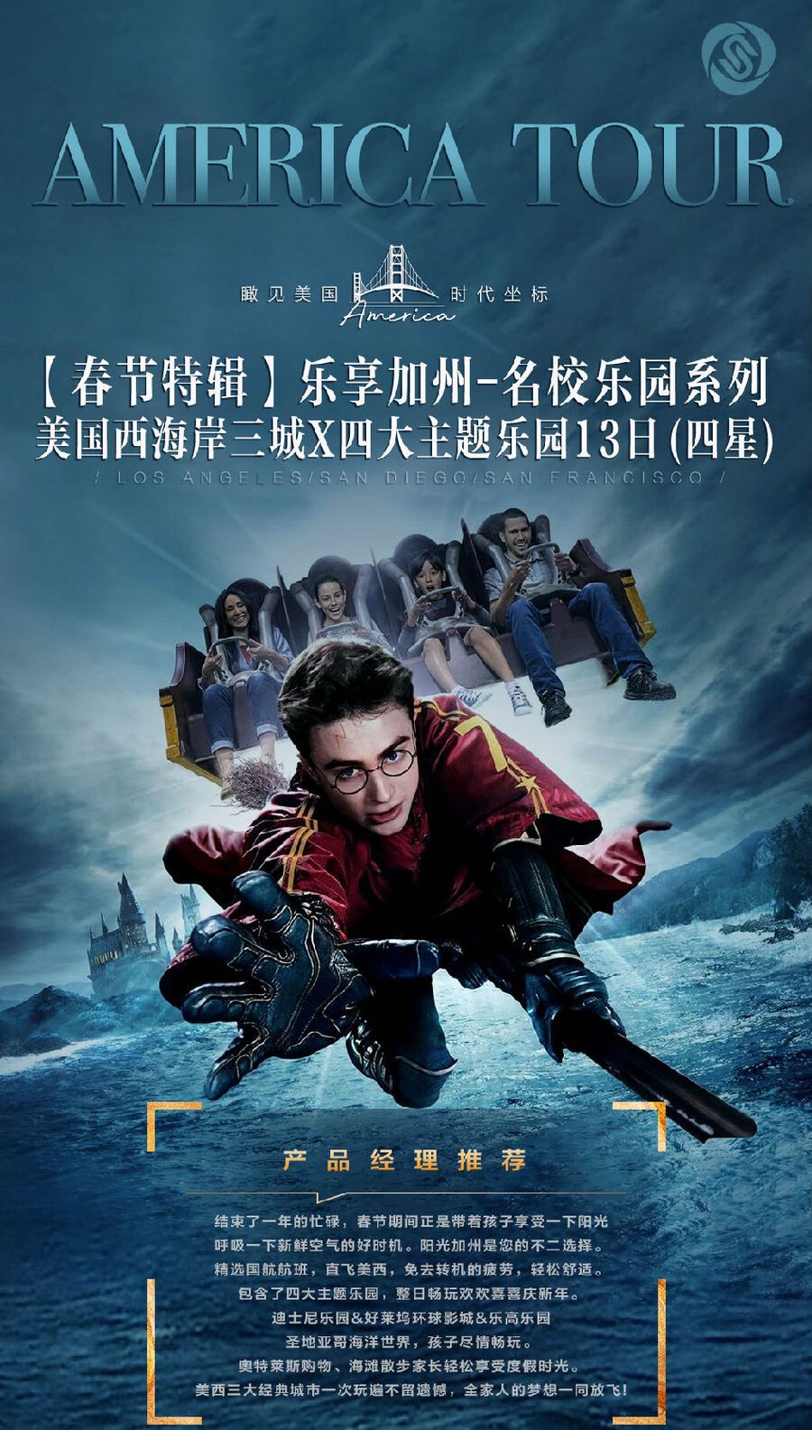 | 早餐后造访【好莱坞环球影城】(不少于 6 个小时),游览全世界最大的电影制片厂。在这里游客可以回顾经典电影片段,亲睹惊险镜头的拍摄及特效制作过程。此外,您可体验哈利波特、小黄人、变形金刚、辛普森一家等经典形象的娱乐设施, “功夫熊猫”园区也将带给您精彩刺激的体验。影城外的露天徒步购物广场 UNIVERSAL CITY WALK 也是您不可错过的地方,作为环球影城的配套购物中心,这里有巨型户外荧幕,环球影城餐厅和礼品店。为便于您随心选择美食,午餐请在园区内自理,来霍格莫德品尝黄油啤酒、南瓜汁,享受美味大餐,以及规模最大的亚洲美食连锁店熊猫快餐(Panda Express)。温馨提示:园内项目请根据自身身体状况选择性参加,为了便于您自由活动,此日午餐在园内自理 |