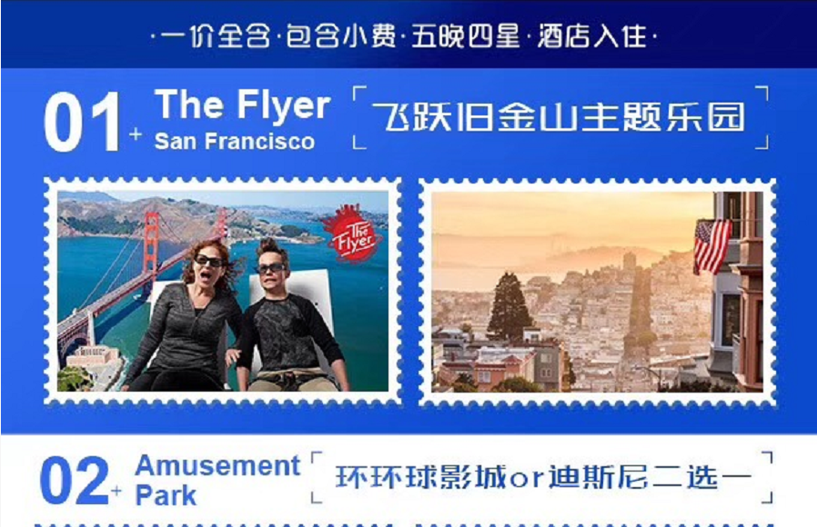 | 早餐后游览有浪漫文化之都美称的旧金山,我们精心安排前往39号码头,体验全新的项目飞跃旧金山,一个旧金山的必游项目,28个座位的飞行剧院采用最新的3D技术,在旧金山标志性的天际线进行空中旅行模拟体验,在金门大桥上起飞,在科伊特塔上降落,在朗伯德街和唐人街上飞驰,在红杉国家森林中翱翔(全程约20分钟),之后乘车前往世界闻名的一流学府【加利福尼亚大学伯克利分校】,这里的师生曾获72个诺贝尔奖、20个奥斯卡奖!校园古色古香,在伯校的地标萨特尔塔前更可远眺金门海峡。随后前往人气地标【九曲花街】,街道上遍植花木,春天的繍球,夏天的玫瑰和秋天的菊花,把它点缀的花团锦簇。游览因巴拿马太平洋万国博览会而建的仿罗马式建筑—【艺术宫】(约15分钟)。世界著名大桥之一,旧金山的象征—【金门大桥】(下车参观不过桥,约15分钟)。【渔人码头】(约60分钟)也是游客必到的地方,可光顾售卖海鲜小吃的大小摊档,购买特色纪念品或观看街头卖艺者表演杂耍和各种乐器,今日贴心为您安排渔人码头【海鲜餐厅品尝螃蟹美食餐】。 |