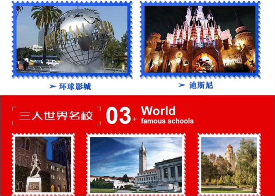| 主题乐园一:早餐后游览好莱坞的心脏—【星光大道】(约15分钟),星光大道在1960年放置的第一颗星是为了乔安伍德沃德。星光大道上已有2400多个明星在上面留下签名和手印,而且这个数字还在以每月一至两名的速度递增,这里的每颗星都表达了对电影,广播,电视,话剧行业作出贡献的两千多名艺术家的敬意。【杜比剧院】(约15分钟),原来的柯达剧院,说起“柯达剧院”,大家可能都有所熟悉,这是每年奥斯卡颁奖礼的专用剧场。它建成于2001年底,被选作是奥斯卡的永久举行地,但是因为柯达公司的破产,自2012年5月起,剧院的新东家杜比公司将其正式改名为杜比剧院。【中国大剧院】(约15分钟),中国戏院建立于1927年,戏院高27.5米,由两根珊瑚红色的巨柱挑起铜顶,游览【好莱坞环球影城】(约4小时),环球影城座落在美国电影工业重镇好莱坞,占地525英亩,占据了整座好莱坞山,而实际投入使用的有485英亩。它由48个电影制片厂组成,其中有32个致力于影片的拍 摄。环球电影城是世界上最大的电影和电视剧产地,而好莱坞环球影城主题公园是洛杉矶最为著名的旅游景点。(为了充分的享受乐园的时光,今日午餐、晚餐自理)主题乐园二:早餐后前往【迪士尼乐园】(约6小时)游览(无导游陪同),全球第一所迪士尼主题乐园,园内共有八个主题区,「美国主街」上的蒸汽火车、单轨电车,让人回到早期美国小镇的淳朴生活;「未来世界」里,高速旋转飞车载着您在宇宙星光中遨游;「新奥尔良广场」,重现路易斯安那州新奥尔良的迷人风光;「探险乐园」布满原始森林与沼泽,印第安纳琼斯列车是游客的最爱,在「米老鼠的故乡」,您可以和米奇、米妮老鼠聊天,「西部乐园」里,汽船与矿车让您体验昔日西部疯狂激情,搭乘小木筏去拜访汤姆.索耶的荒岛,到「神话乐园」与白雪公主、小木偶、唐老鸭、小飞象以及其他您喜爱的迪士尼人物合影,和小飞侠一起翱翔天空,与爱丽丝携手梦游仙境。最新落成的「明日乐园」吸引了更多的游客,让人流连忘返。(为了充分的享受乐园的时光,今日午餐、晚餐自理) |