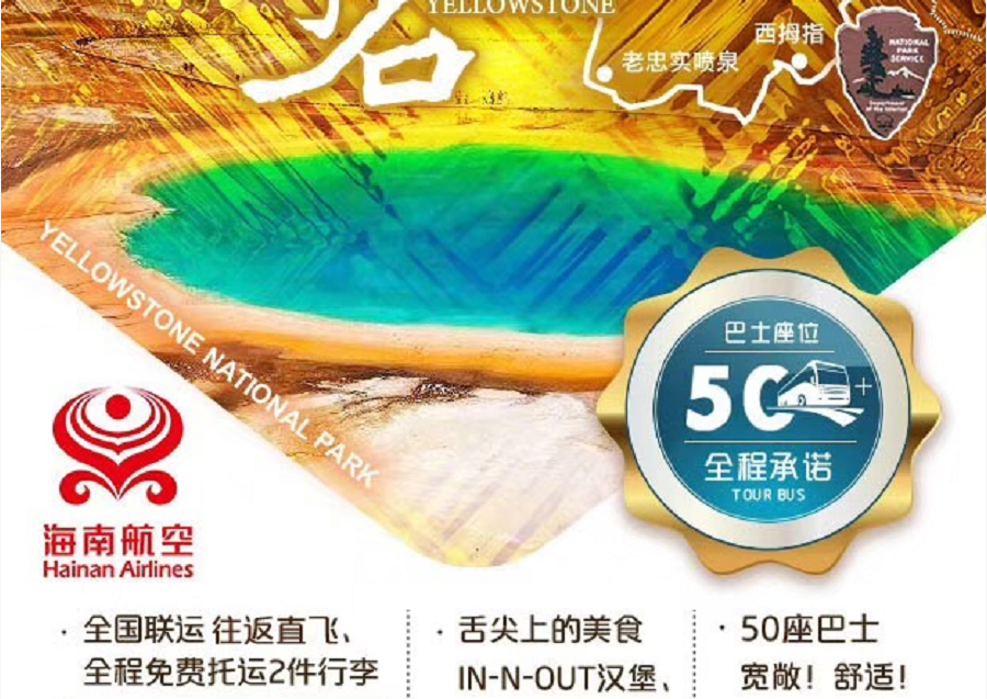 | 早餐后,前往“美国国家公园的冠上明珠”—黄石国家公园。首先游览诺里斯间歇泉盆地(约30分钟)诺里斯间歇泉黄石公园里最热最不稳定的一系列间歇泉,世界上最大的间歇泉 Steamboat Geyser 也位于此区,它长期蛰伏,很久才喷发一次(上次喷发为2008年),它曾创造了喷发高度的记录380英尺。之后接着前往黄石公园内最精华的部分【峡谷区】(约1 小时),黄石峡谷和黄石瀑布是黄石公园著名景观之一,可以同时观赏壮观深邃的峡谷风光和飞流而下的瀑布,黄石峡谷长32公里,宽约450-1200公尺,深达360公尺,长期的河水冲刷形成了色彩瑰丽的岩壁,呈现出黄、橙、棕、褐等,印第安人称之为“黄石”。随后去观赏的【泥火山】(Mud Volcano)(约20分钟),又是另一番景象,平静时如一潭死水,喷发时则泥浆涌动,酸雾密布。这里是黄石硫磺浓度高的区域,喷发的洞窟旁边,形成了一个个硫酸湖,湖边结着许多黄色的硫磺结晶。游览【豆浆池】(Fountain Paint Pot)(约20分钟)这里因它的多彩泥浆而得名。之后前往美国最大的热泉,也是世界第三大热泉,它被命名为“最美的地球表面” 大棱镜热泉游览(约30分钟)。1871年,它被地质学家发现,并因其醒目的色彩而被命名为大棱镜,温泉水中富含矿物质,使得水藻和菌落中带颜色的细菌在水边得以生存,从而呈现了这些色彩。从里向外呈现出蓝、绿、黄、橙、橘色和红色等不同颜色,最后前往老忠实喷泉(约1 小时),老忠实喷泉常年以来因其很有规律地喷发而得名。从它被发现到现在的100多年间,每隔33-93分钟就会喷发一次,每次喷发持续四至五分钟,水柱高达40多米,从不间断。(注:以上为描述性语言,如遇黄石公园内修路或部分景点关闭,导游会根据实际情况调整游览内容,请各位游客理解并配合) |