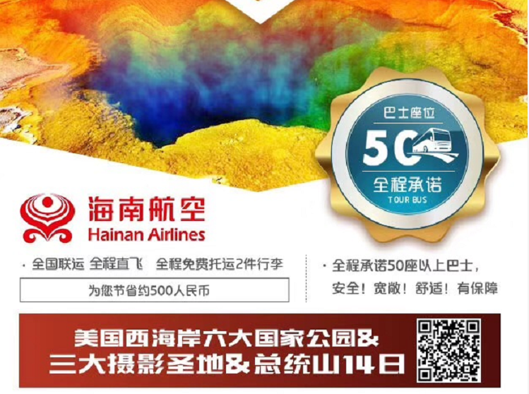 | 早餐后乘车前往黄石公园游览【黄石公园】,【猛犸温泉】(约45分钟),是世界上已探明的最大的碳酸盐沉积温泉,热泉从山坡上一节一节地流下来,成为了一个色彩丰富的阶梯,地壳运动停止后,孤树伫立,荒石衬映,苍凉感油然而生。前往最著名的湖畔景点【西拇指】(约30分钟),间歇泉盆地,西姆盆地,位于黄石湖边上,十五万年前因地壳陷落而形成,在热喷泉与湖水结合下,出现了一种烟雾弥漫的奇妙景观:烟雾缭绕处是熱泉的蒸氣,绿波盈盈处是黄石的湖水,与背景中蓝天白云相互辉映,形成与黄石其他温泉区不同的景观,,晚入住酒店休息。(注:以上为描述性语言,如遇黄石公园内修路或部分景点关闭,导游会根据实际情况调整游览内容,请各位游客理解并配合)(温馨提示:今日车程时间较长,行程较为辛苦,请做好准备。) |