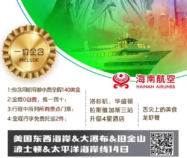 | 早上前往纽约城市观光,游览:【自由女神像】乘船游不上岛(约1小时)高举火炬的自由女神像象征着美国自由民主精神,她是当年法国为庆贺美国独立100周年而赠送,神像左手拿着独立宣言,右手高举火炬,眼望前方,鼓励为实现理想而到美国的移民。【华尔街】(约20分钟)以美国的金融中心闻名于世,美国摩根财阀、洛克菲勒石油大王和杜邦财团等开设的银行,著名的纽约证券交易所也在这里。【铜牛】(约15分钟)是华尔街的标志,是一座长5米,重6.3吨的铜牛塑像。铜牛是“力量和勇气”的象征,寓意着只要铜牛在,股市就能永保“牛”市。每天都被游客围的水泄不通。【联合国总部大厦】(外观,约15分钟)是联合国总部的所在地,被称为“国际领地”。途经【时代广场】得名于《纽约时报》早期在此设立的总部大楼,是纽约剧院最密集的区域,是繁盛的娱乐及购物中心,每年新年钟声均在此敲响。途经【洛克菲勒中心】是一个由19栋商业大楼组成的建筑群,各大楼底层是相通的,由洛克菲勒家族投资新建,在1987年被美国政府定为“国家历史地标”。【第五大道】(不少于1.5小时,午餐在第五大道自理)是纽约曼哈顿区的中央大街,是“最高品质与品位”的代名词,名牌商店遍布,可以想到的名店几乎都可以在这条大街上找到,可以想到的商品也几乎都可以在这里找到。(为了让您可在第五大道自行品尝当地小吃美食,当日午餐自理)【归零地911世贸中心遗址】(30分钟)归零地指的就是在“9•11恐怖袭击”中倒塌的世界贸易中心遗址,如今已成为游客的必到之地。游览结束入住酒店休息。 |