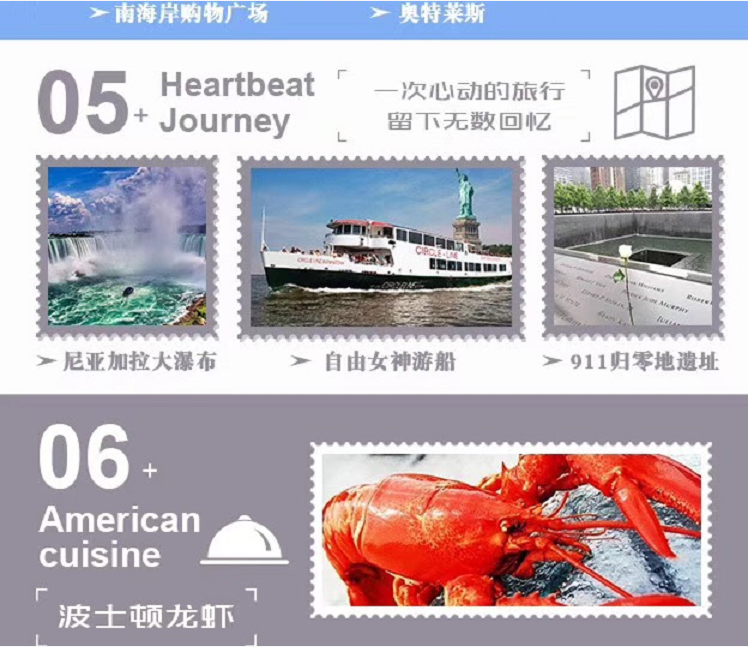 | 早上前往纽约城市观光,游览:【自由女神像】乘船游不上岛(约1小时)高举火炬的自由女神像象征着美国自由民主精神,她是当年法国为庆贺美国独立100周年而赠送,神像左手拿着独立宣言,右手高举火炬,眼望前方,鼓励为实现理想而到美国的移民。【华尔街】(约20分钟)以美国的金融中心闻名于世,美国摩根财阀、洛克菲勒石油大王和杜邦财团等开设的银行,著名的纽约证券交易所也在这里。【铜牛】(约15分钟)是华尔街的标志,是一座长5米,重6.3吨的铜牛塑像。铜牛是“力量和勇气”的象征,寓意着只要铜牛在,股市就能永保“牛”市。每天都被游客围的水泄不通。【联合国总部大厦】(外观,约15分钟)是联合国总部的所在地,被称为“国际领地”。途经【时代广场】得名于《纽约时报》早期在此设立的总部大楼,是纽约剧院最密集的区域,是繁盛的娱乐及购物中心,每年新年钟声均在此敲响。途经【洛克菲勒中心】是一个由19栋商业大楼组成的建筑群,各大楼底层是相通的,由洛克菲勒家族投资新建,在1987年被美国政府定为“国家历史地标”。【第五大道】(不少于1.5小时,午餐在第五大道自理)是纽约曼哈顿区的中央大街,是“最高品质与品位”的代名词,名牌商店遍布,可以想到的名店几乎都可以在这条大街上找到,可以想到的商品也几乎都可以在这里找到。(为了让您可在第五大道自行品尝当地小吃美食,当日午餐自理)【归零地911世贸中心遗址】(30分钟)归零地指的就是在“9•11恐怖袭击”中倒塌的世界贸易中心遗址,如今已成为游客的必到之地。游览结束入住酒店休息。 |