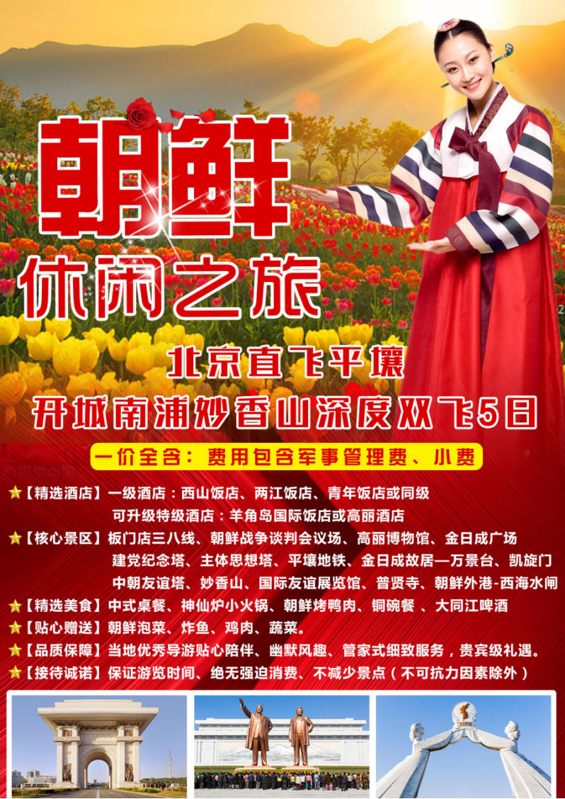 <朝鲜飞机团>北京直飞朝鲜五日游 平壤、开城、妙香山、南浦双飞5日游