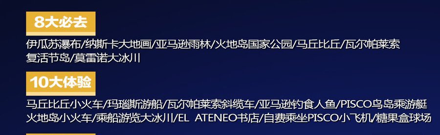 | 早餐后,乘车前往有名的自然保护区【PARACAS 海狮岛码头】(车程 20 分钟),抵达后乘游艇沿鸟岛游览,可观赏到古老的世界神奇之迷的山间烛台奇观、数以万计的海鸟、海狮、小企鹅等。(游览时间为 2 小时)。如因天气原因港口无法开船,则行程更改为:【帕拉卡斯红滩国家自然保护区】。 后乘车前往机场,自费乘坐【PISCO 小飞机】观赏【纳斯卡大地画】,在世上大谜团之一的【纳斯卡大地画】参加飞行之旅。您将搭乘私人小飞机飞行观看这些迷一般的地画,包括太空人、蜂鸟、秃骛、猴子、蜘蛛、壁虎、鲸鱼、蛇、鸟、树根、花、几何图案如螺旋、三角形、长方块.其已于 1994 年被联合国科教文组织选为世界遗产,位于高原沙漠中,在西元 400 到 650 年间由纳斯卡文明做出的八百多幅画,因为太大,直到 1939 年因为飞机经过其上空才被发现。假设纳斯卡人未能从有利位置看见他们的作品,他们如何精准地作出这些画呢?目的为何?没人敢说哪一种是正确的,留给大家无限的想象空间。午餐后乘车返回利马(4 个小时),抵达首都利马后入住酒店休息。备注:不参加乘坐 PISCO 小飞机的游客将返回酒店或车上休息,领队带不乘坐完小飞机的游客一起用午餐。之后会和返回利马。 小飞机的具体起飞时间要提前一天知晓,具体情况以当时为准。现场报名小飞机可能无法报名成功。本团费用不包含【PISCO 小飞机】,费用自理,且在团队出发前 7 天告知是否确认乘坐,方能保证,如果旅游当天决定是否乘坐,有可能没有位置,敬请知晓。 |