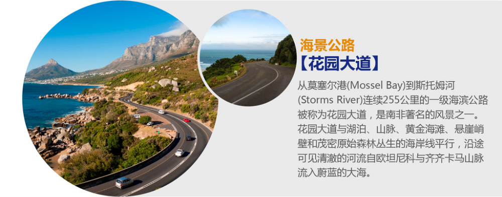 | 酒店早餐后,前往著名的开普半岛,开普半岛云集了开普敦最重要和最著名的旅游景点,每处景观都让人赞叹和留连,如果到了开普敦而没去开普半岛,不但开普敦的魅力减少一半,更会令你抱憾终身,当日游览首先从大西洋沿岸的豪特湾开始:豪特湾是开普敦最有名的海湾之一,它藏于两山之间。乘船游览海豹岛:航行十几分钟,来到一个叫德克岛的海岛附近,这个岛离陆地只有百多米距离。小岛方圆顶多几千平方米吧,没有树,也没见花草,光秃秃的石头。岛上全是海豹,据说有几千只。我们的船贴近海岛慢速行驶,那海豹的各种姿态都看得清楚,有趴地安详休息的,有爬来爬去的,有互相厮咬的,有纵身下海的,也有从海中正艰难爬上岸的。有的海豹又肥又大,胜过一头肥猪。岛边的海里,水清见底,也是海豹的世界,它们或跃出海面,或翘起尾巴摆水,或两头在一起嬉戏,或相互追逐,千姿百态,惹人喜爱。午餐享用原只龙虾餐,随后前往企鹅滩(入内约45分钟):企鹅是非洲及其珍贵的动物,日前已被世界动物保护协会列入保护动物名录。企鹅滩上的企鹅们每天迎着朝阳步履蹒跚在行走在沙滩上,它的憨态可掬引得游客们一阵阵的欢笑,实在是一个令人流连忘返的地方。随后来到非洲大陆西南端的好望角自然保护区(入内2小时): 好望角是欲为通往富庶的东方航道,故称好望角。苏伊士运河通航前,来往于亚欧之间的船舶都经过好望角。特大油轮无法进入苏伊士运河,仍需取此道航行。这里依然保持着原始风貌,在这里可看到大西洋,印度洋两洋交汇而掀起的淘天巨浪和旋涡,1919年,好望角建立了整个非洲最明亮的灯塔为过往船舶指点迷津,游人登上238米高的开普角山顶,纵览大西洋,印度洋交汇处,水天一色,烟波浩渺! 傍晚乘车返回开普敦,前往工艺品店:专营南非当地出产的各种具有非洲特色的彩绘,鸵鸟蛋,石雕,木雕,面具,非洲腰鼓,各种兽皮及皮制品,皮包,皮质手工艺品等非洲特色手工艺品;前往大西洋海边观景大道休闲小憩(约40分钟左右);晚餐想用特色中式鸵鸟肉餐,晚餐后入住酒店休息 |