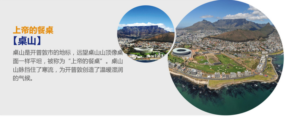 | 酒店早餐后,前往桌山景区(如因天气等外力因素导致桌山关闭则改为游览信号山):桌山又称为“上帝的餐桌”,是开普敦最醒目的标志。 这是一块巨大而光秃的山岩,高高耸立且连绵11公里,远远望过去,就好像是一个光滑平面的大桌子。桌山的最高点为1,088公尺,上层为砂岩,下层多为花岗岩。 这里山中有许多小动物,山脚下也曾发现海底生物的化石。当白云飘过桌面时,开普敦居民会将此景称为“白巾铺桌”。在山上可以俯视整个开普敦市区,同时也可以眺望好望角。桌山缆车在1929年10月4日启用,到现在已有70多年的历史。缆车的下站是位于海拔366公尺处,上站则在海拔1,067公尺的山上,上下距离700公尺,约需五分钟的时间。前往世界六大植物区系之一的开普植物区-克斯腾伯斯国家植物园:位于南非开普敦市桌山的东坡,占地面积528公顷,栽培开放区只有36公顷。虽建园是1913年,但早在1660年第一任总督Jan Van Riebeeck就在这里种植了作为殖民地分界用的绿篱,这些植物现今仍在。该区面积虽然不大,只占地表的0.04%,却有8500多种植物分布,其中相当一部分是特有种。收集栽培了4000 种开普半岛的当地植物是克斯腾伯斯国家植物园最大的特色,因此成为植物工作者如痴向往的地方。开普敦市区观光:南非最古老的街心花园,南非最著名的圣乔治大教堂,南非议会及总统府(外观40分钟左右);驱车前往2010年南非世界杯比赛场地绿点球场-GREEN POINT外观合影留念。下午搭乘阿联酋航空前往迪拜。 |