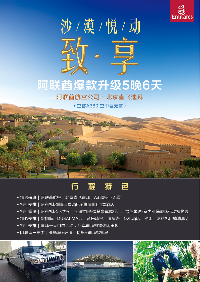 <四星+五星> 阿联酋爆款升级5晚6日游