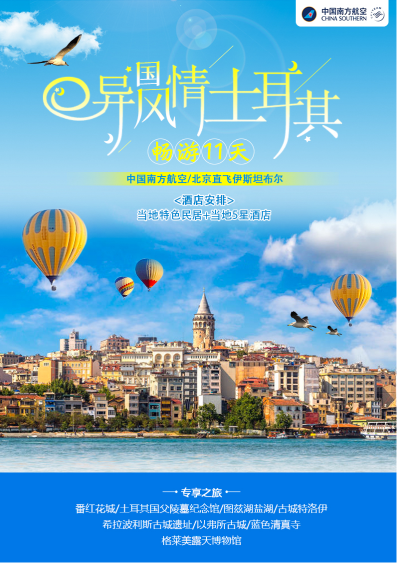 | 早退房,乘车前往伊斯坦布尔机场,送机。07:35 搭乘中国南方航空股份有限公司CZ680航班返回北京21:50 抵达北京,结束行程; |