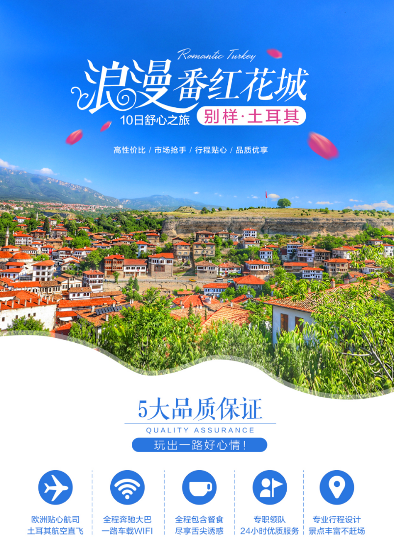 | 00:50搭乘土耳其航空公司TK21航班飞往伊斯坦布尔06:10抵达伊斯布坦布尔,导游举牌接机4乘车前往世界文化遗产-番红花城(行车约5小时)番红花城(Safranbolu)被称为是土耳其最美丽的山城。这里保存约八百栋土耳其最精致的十九世纪Ottoman房屋。此古镇完整保留了鄂图曼土耳其时代的面貌。来到番红花城之后才发现,见证奥斯曼帝国无数辉煌荣耀的番红花城显赫的历史背景并不是让人直接爱上它的理由,番红花城那与尘世隔绝的气质深深地烙印在每个曾经到访过过这里的旅人。虽然整座城镇有些残破,但并不妨碍它的美为世人所传诵。4午餐用当地午餐。4之后参观【希德勒尔山】(外观)。晚入住当地民居特色的奥图曼式旅馆。不同于常规星级酒店,番红花的特色酒店的独特风格无异于入住番红花城当地民居,令人体验别样的民俗风情。特别说明:番红花民宿酒店房间数量有限,团队出行期间会分住不同的民宿酒店(同级别) |