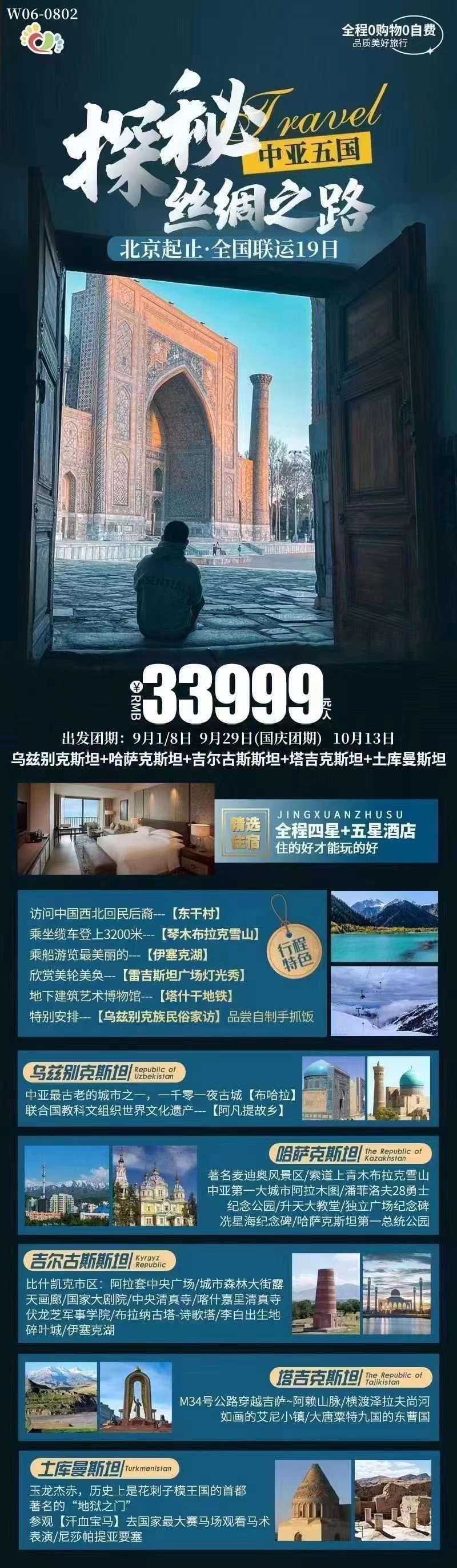 <中亚五国>乌兹别克斯坦+哈萨克斯坦+吉尔古斯斯坦+塔吉克斯坦+土库曼斯坦19日