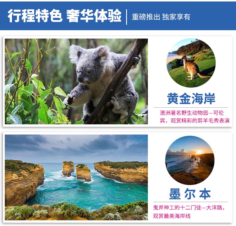 | 国际参考航班:CA174(2040/0430+1)早餐后,【今日亮点】畅游悉尼三园(全部时间约2-2.5小时,为方便游玩,今日午餐敬请自理)【悉尼杜莎夫人蜡像馆】位于达令港中心地带,紧邻悉尼水族馆和悉尼野生动物园,是悉尼趣味横生的全新互动式景点。馆内设有80多尊名人蜡像和9个互动主题区,男女老少皆宜,您可以在此亲身接近一线名人。【悉尼水族馆】是全世界最大、最壮观的水族馆之一,位于达令港东部,主体建筑在达令港水面下。这里的通道长达百米,两边都是圆弧形的透明玻璃,真正与海洋生物面对面!水族馆展出了来自澳大利亚各大海域的水生生物,比如鸭嘴兽、小丑鱼、小企鹅以及会变性的拿破仑鱼,许多海洋生物也只能在悉尼水族馆才看得到,比如大型纺锤状的儒艮!请预留至少一个半小时的时间参观。这里多个馆都根据澳大利亚海域来命名。【悉尼野生动物园】并不是国内意义上的“野生动物园”,而是位于悉尼市中心情人港畔,号称“世界最大的室内动物园”,与水族馆毗邻。在这里您欣赏独特的标志性澳大利亚动物绝对是难忘的体验。这里有超过65种以上的展品,超过130种不同种类的澳大利亚动物。您可以探寻来自超过澳大利亚9种独特的栖息地,跨越3层地表环境。在这里您可以接触到袋鼠,观看非常可爱的毛鼻袋鼠,可以同考拉拍照,还可以置身于蝴蝶的世界。更可以近距离接触5米长的巨大咸水鳄。这里有着澳大利亚内陆致命的动物:大毒蛇,食火鸡,悉尼漏斗网式蜘蛛。这里还有濒危物种:超大的兔耳袋狸,黄足岩袋鼠。悉尼野生动物世界让您尽情的享受最特别和奇异的野生动物。悉尼市区游览:【FISH MARKET“鱼市场”】中午我们将前往澳洲当地海鲜市场,品尝生猛海鲜(午餐自理)(停留约1.5小时)。这里是澳洲供应新鲜鱼类的世界级市场,提供澳洲、南太平洋和亚洲一百种以上的海鲜种类。走进悉尼鱼市场,林林总总的海鲜便会尽现眼前,左边的是鲜活生蚝,右边的是深海大龙虾,迎面看到的是整条肥美的三文鱼刺身,转过头来又见到皇帝蟹,十分地新鲜,叫人垂涎。这种情景对海鲜迷来说,简直就是梦想成真地方。(您可以尽情自费试吃)。午后前往悉尼国际机场,搭乘国际航班飞回北京,夜宿飞机上。 |