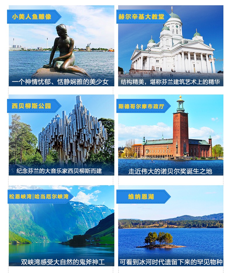 | 07:00 酒店享用西式早餐08:00 开始市区游览,市政厅广场是哥本哈根的心脏,也是全国的神经中枢, 网状的公路从广场通向丹麦的四面八方。一个世纪以来,丹麦的许多重大活动都在市政厅广场举行。参观举世闻名的大文豪安徒生雕像,还有议会大厦采用圆盘形状,主体四周为白色大理石圆柱,其建筑风格融合了印度传统风格与维多利亚时期的特点。哥本哈根的象征-美人鱼雕像,是哥本哈根的标志性雕像。取材于安徒生的童话“海的女儿”的故事。雕像完成于1913年,出自丹麦雕塑家埃里克森之手,由嘉士伯啤酒的创始人雅格布森出资。童话中的小美人鱼坐在海边的一块岩石上凝视着对面海港。雕像多灾多难,经常成为无聊人的袭击目标,曾多次被盗或被毁,最近的一次是2003年9月被人推到了大海里。但所幸的是原铸造模具仍保留着,使的雕像得以修复。您还可以自由选购琳琅满目的商品。12:30 午餐 五菜一汤13:30 乘车前往瑞典故都哥德堡(行车时间约3个半小时) 18:00 晚餐 五菜一汤。19:30 回酒店休息 |