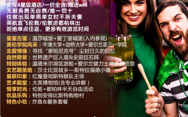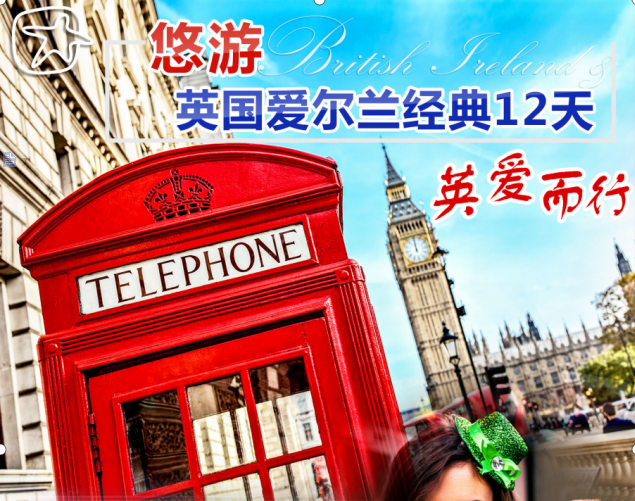<英国>英国爱尔兰 经典12天 全程四星酒店 境外无服务费无自费 英航直飞伦敦