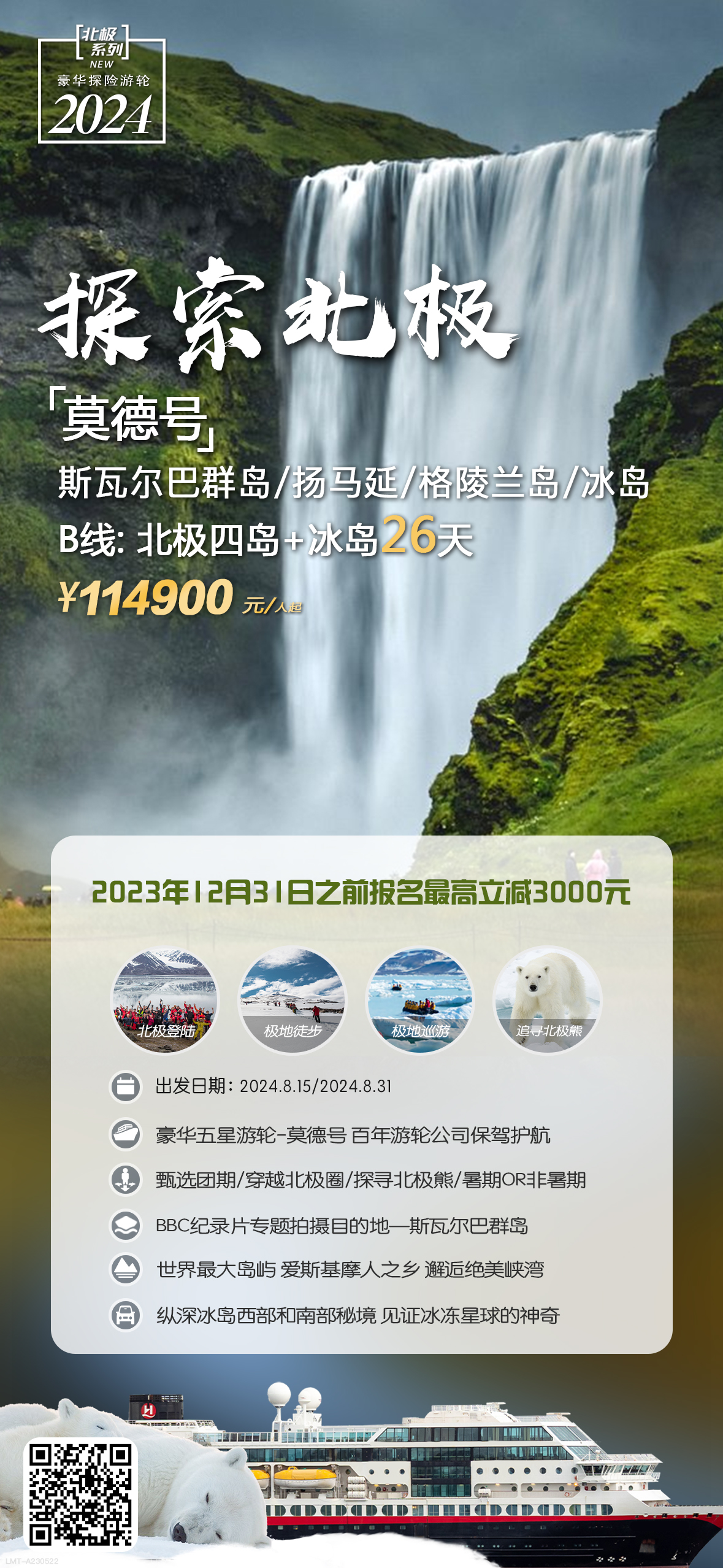 <莫德号>北极四岛斯瓦尔巴群岛 扬马延 格陵兰岛+冰岛深度26日游